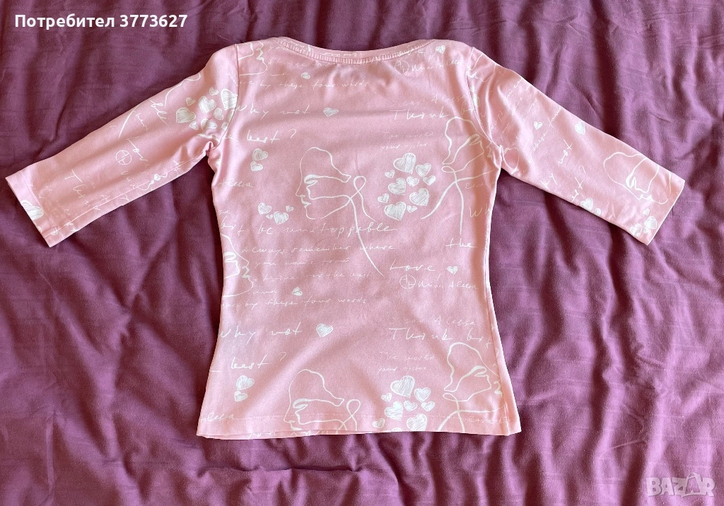 Блузите с 3/4 ръкав са рр С (подходящи и за Хс ) , блузите с дълъг ръкав са рр Хс . Цената е 30€ за брой