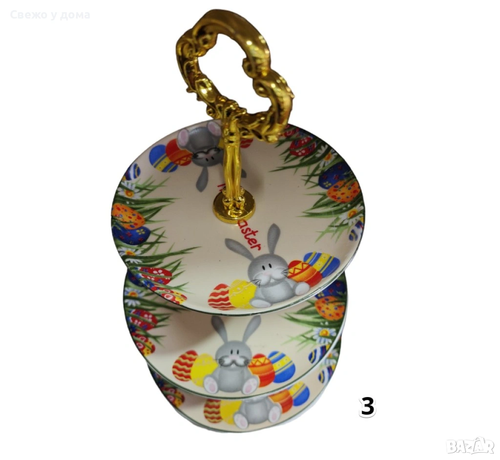 Великденско плато на 3 нива зайче с великденско яйце. Диаметър: 14,18,20см → Обява 54078955