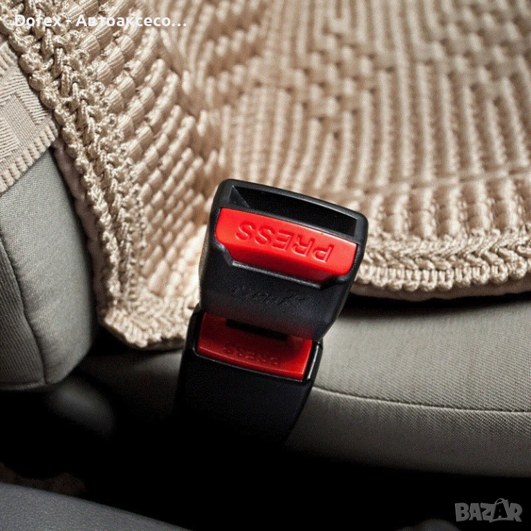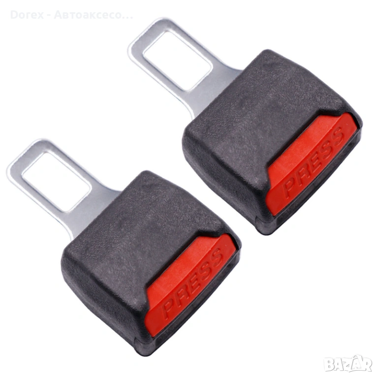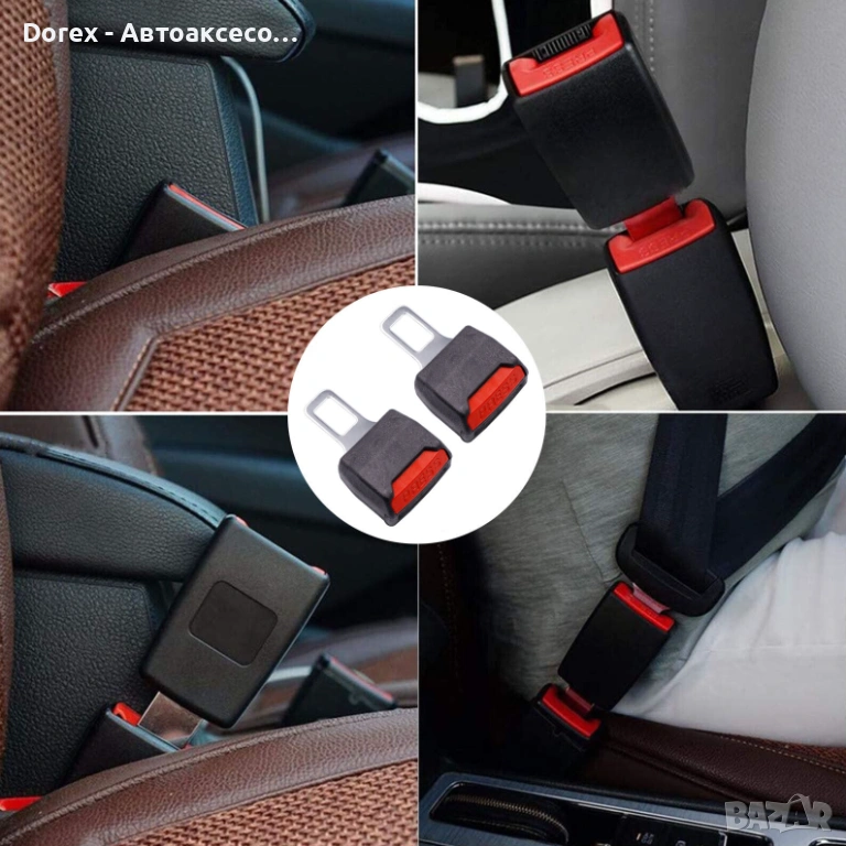 Практичен комплект от 2 закопчалки за автомобилен колан, подходящи за леки коли, камиони, автобуси, бусове и други превозни средства. Закопчалките са създадени за безопасност и удобство, позволявайки използването на колана без премахване на залъгалката.