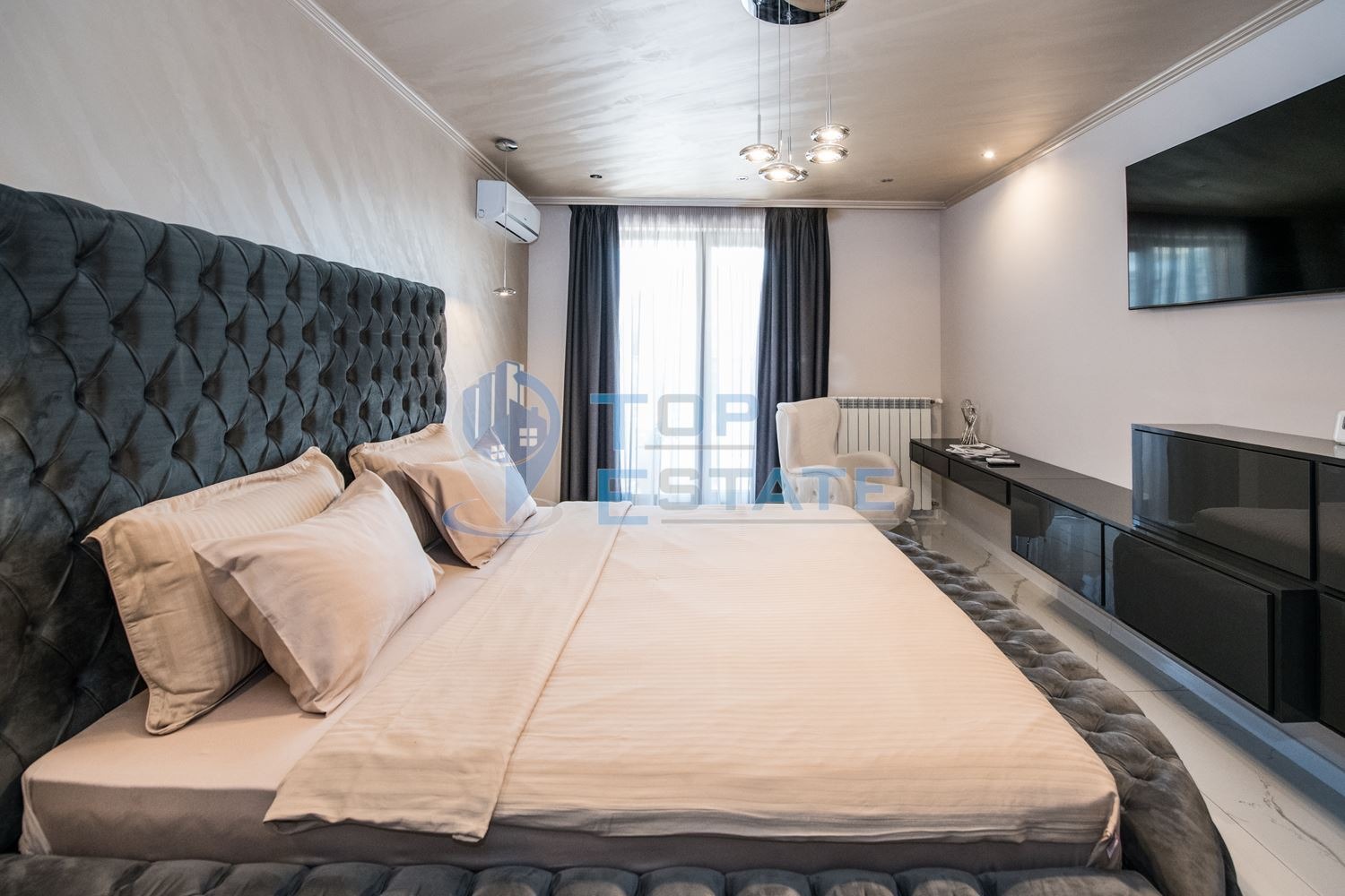 Топ Естейт Недвижими имоти Ви предлага под наем двустаен, новопостроен, луксозен, газифициран апартамент с надземно паркомясто в квартал Бузлуджа, град Велико Търново. Жилището е разположено на четвърти етаж в новопостроена сграда с много добре поддържани общи части и два асансьора, като единия от тях е товарен. Апартаментът се сътои от спалня, всекидневна с кухненски бокс, баня с тоалетна, коридор и тераса, като площта му е 70 кв.м, както и избено помещение от 4 кв.м. Отоплението в имота е осигурено чрез газ, като водата също е на газ, охлаждането като има поставени климатици, също така са поставени радиатори в спалнята и всекидневната, а в банята има подово отопление. Жилището се отдава с наличното висок клас обзавеждане и оборудване, като разполага със съдомиялна, пералня, хладилник, фурна, котлони и други, като всички електроуреди са енергоспестяващи, което осигурява по - малки разходи. Имота разполага с интернет и има поставени два смарт телевизора. Към апартамента влиза и надземно паркомясто, което е голямо удобство и ще ви спести много време в търсене на свободни паркоместа. В непосредствена близост се намират Lidl, Kaufland, училища, детски градини, спирки на градския транспорт, заведения и множество други удобства. Номер на оферта 3468. We speak English and German.