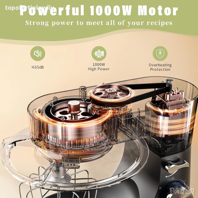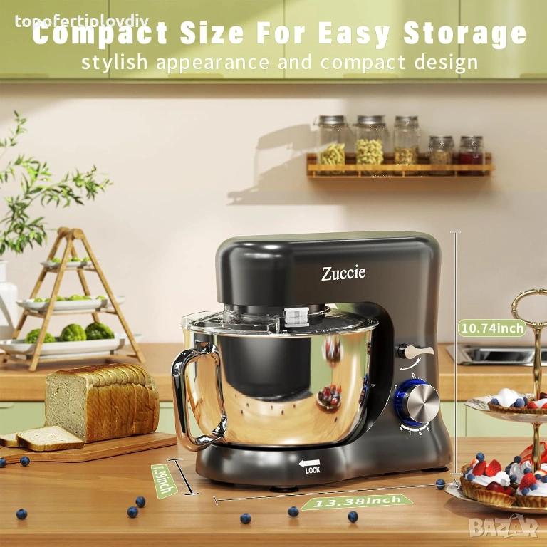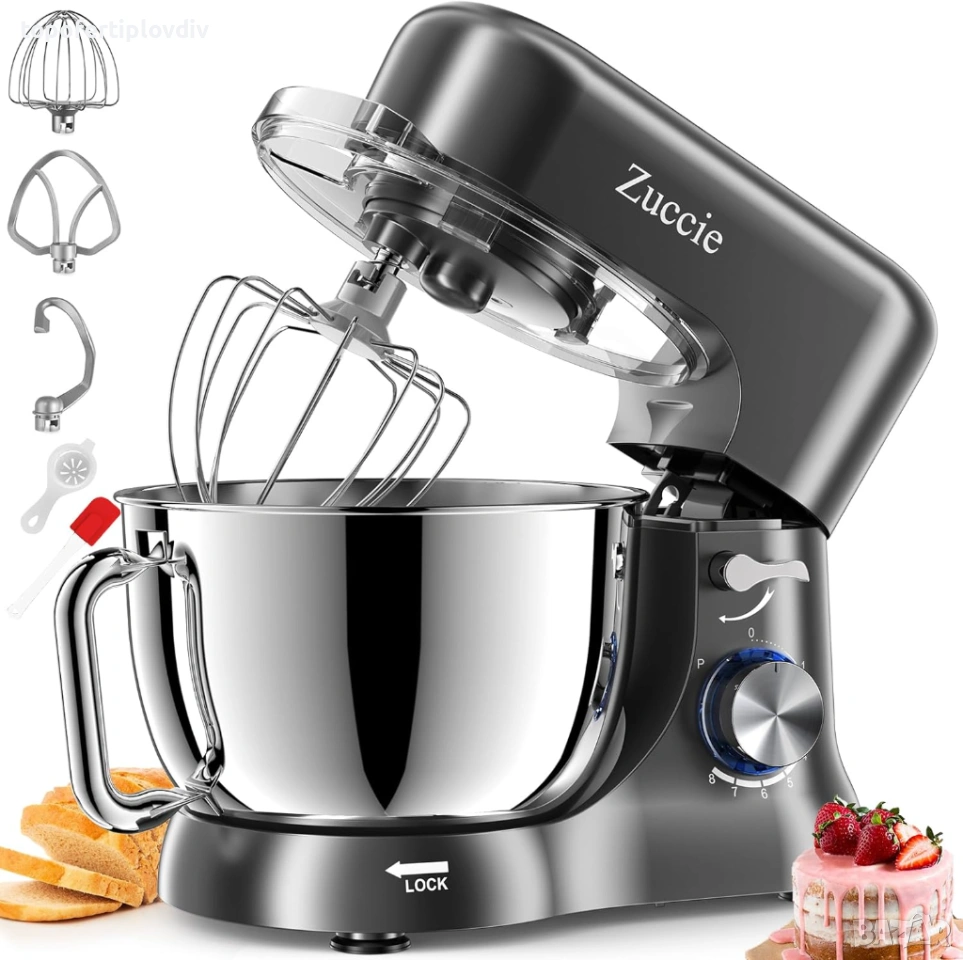 Висока ефективност: Стационарен миксер Zuccie с високопроизводителен мотор 1000 W, изработен от чиста мед, тестото може да се разтегне за 5-8 минути , за да се направи рохкав и разтеглив хляб, здравият ABS корпус е издръжлив и лесен за почистване.