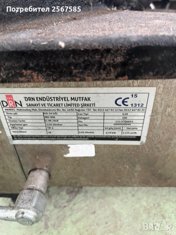 17Кв мощност, наземен, професионален.(70/70см). Подходящ за големи казани до 200 литра.Марка Masyonel.