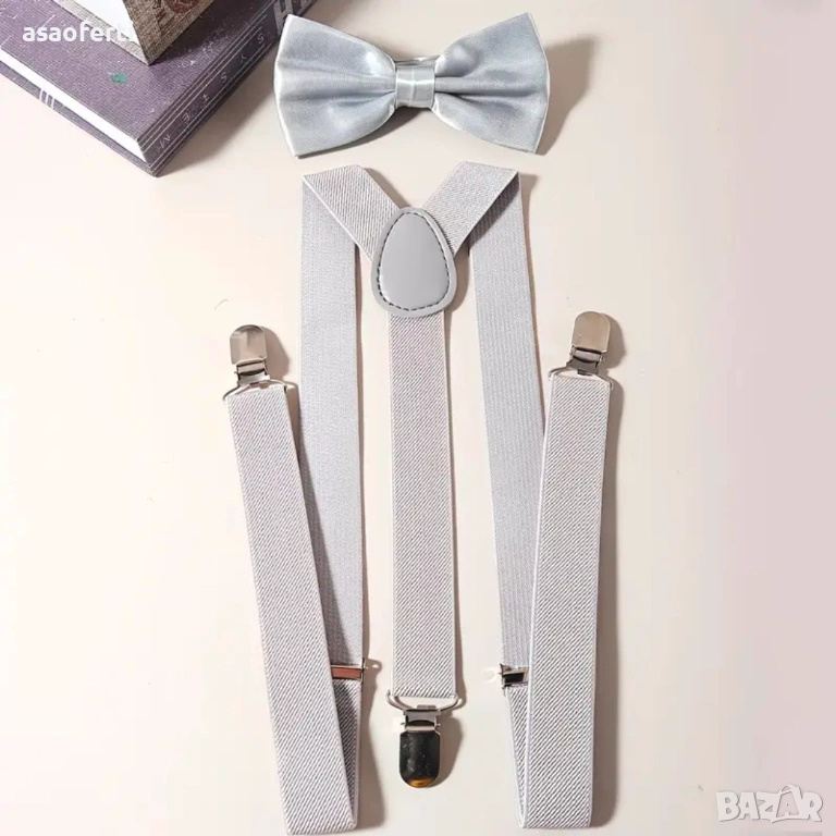 Светло сиво тиранти и папионка, мъжки. → Обява 54079493