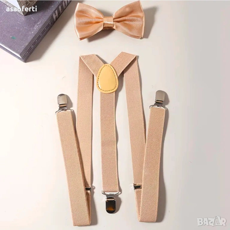 Бежави тиранти и папионка, мъжки. Ширина 2.5 см → Обява 54079534