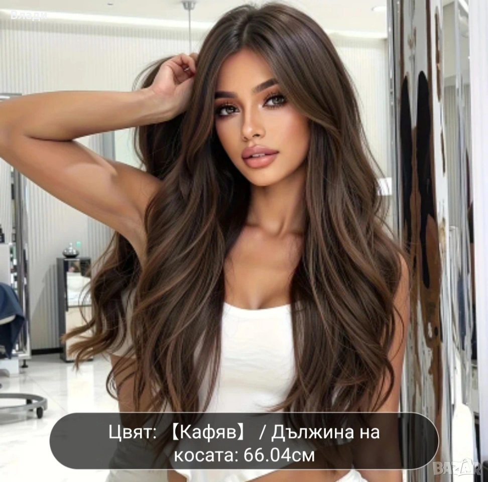 Нова дълга кестенява перука → Обява 54079672