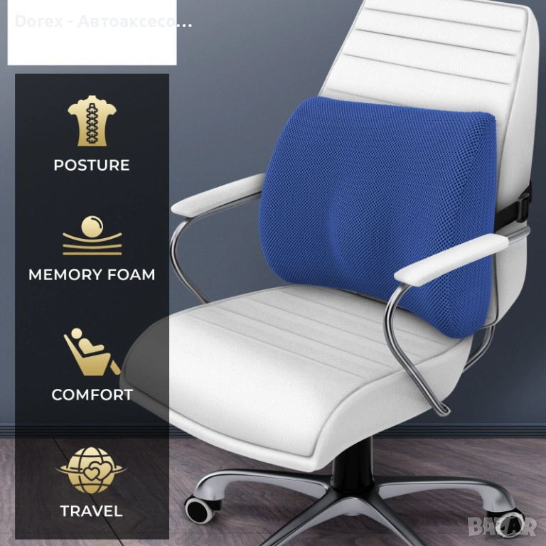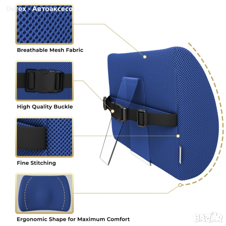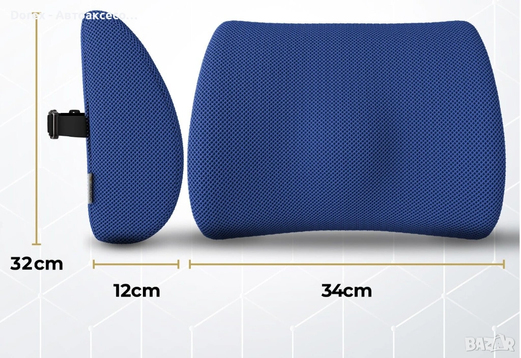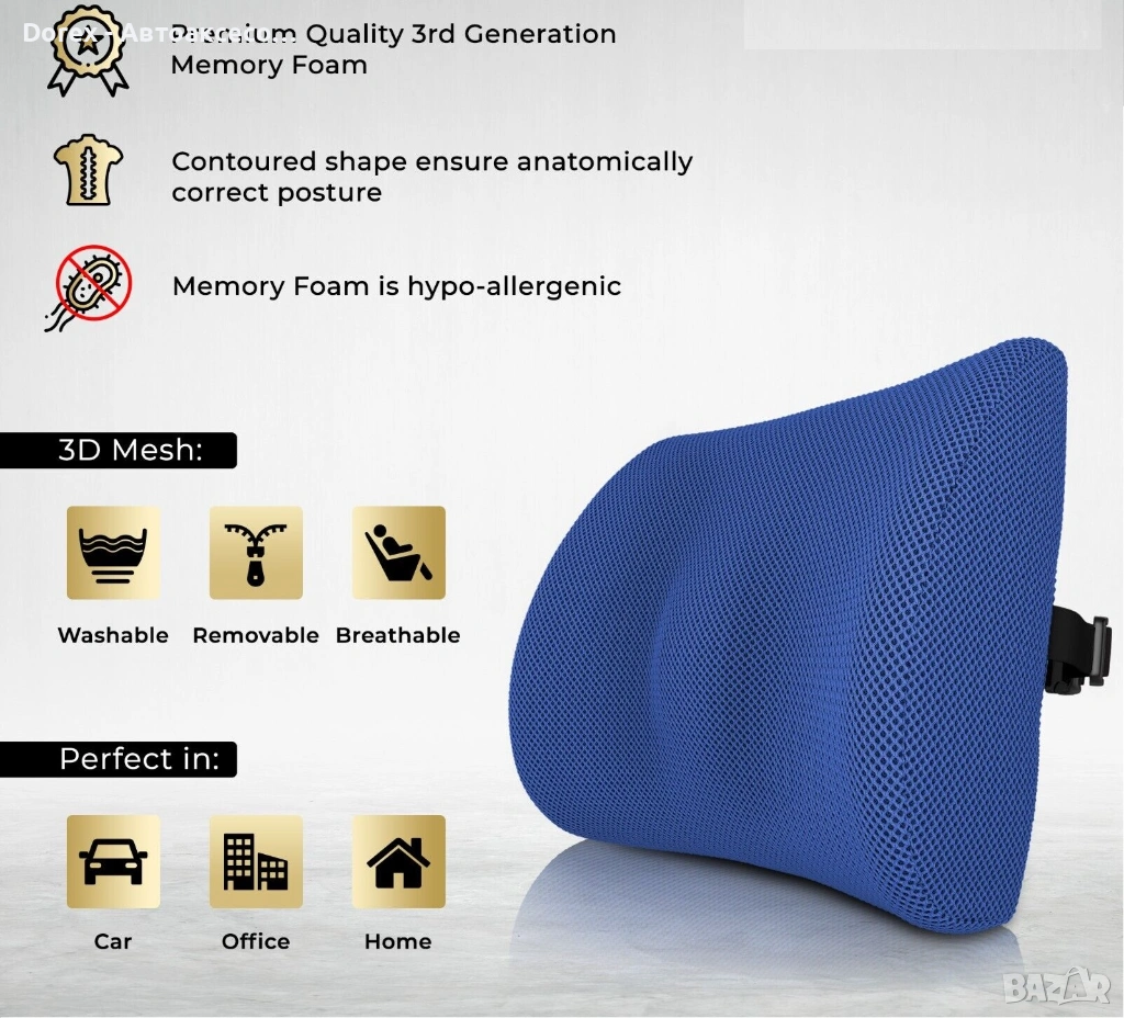Ортопедична лумбална възглавница, изработена от висококачествена мемори пяна с охлаждащ гел, която поддържа гръбнака, облекчава болките в кръста и стимулира правилната стойка. Универсална и подходяща за офис столове, домашни седалки, автомобилни седалки или инвалидни колички. Идеална за хора, които прекарват дълго време в седнало положение.