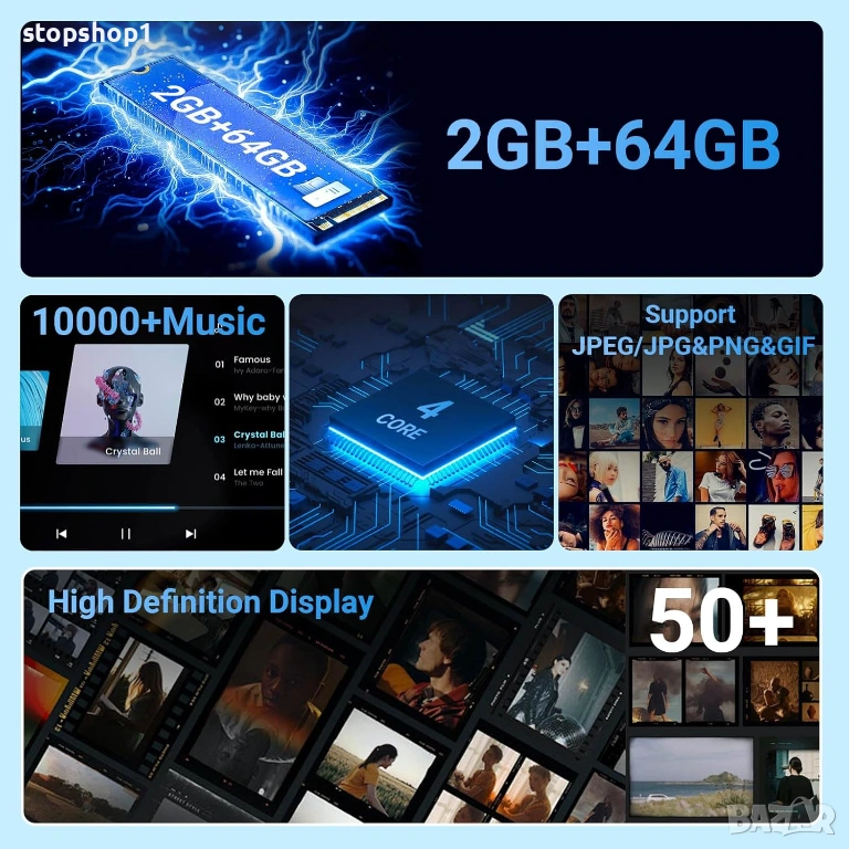 - 【🔥Първокласен звук и производителност】 Кристално чист звук с ASP (Advanced Sound Processing) и персонализируеми настройки на еквалайзера, задвижвани от 4-ядрен процесор за бърза работа без забавяне. Съхранявайте приложения, музика и видеоклипове на 2GB RAM + 64GB ROM.
