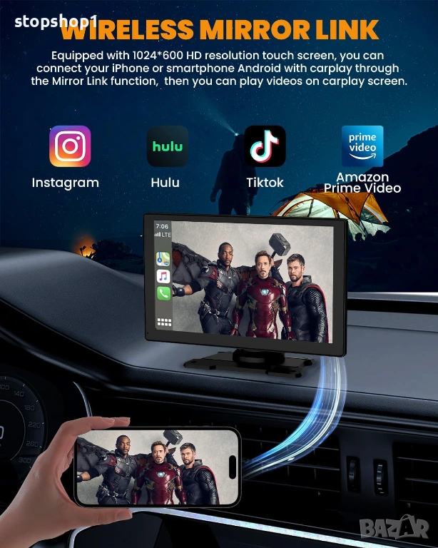 - Съвместимост с iPhone и Android: Съвместим както с iPhone, така и с Android устройства, този таблет за кола Pro Max предлага универсална съвместимост за всички шофьори. Независимо дали сте ентусиаст на Apple или потребител на Android, можете да се насладите на същата лесна връзка и безпроблемна работа. След като свържете смартфона си за първи път, този CarPlay екран за кола автоматично ще се свързва отново всеки път, когато се качите в колата си, елиминирайки нуждата от ръчно сдвояване или кабели, спестявайки ви време и усилия. (Забележка: Устройството CarPlay не е съвместимо с телефони Huawei.)