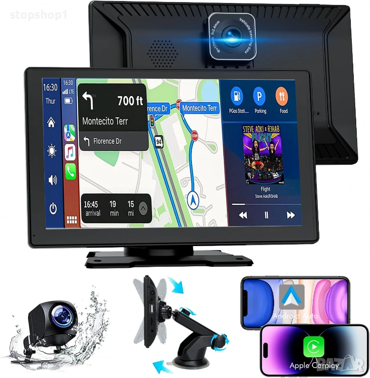 Smart Мултимедия Apple Carplay, 9-инчов екран за iPhone и Android с 1080P HD задна и предна камери