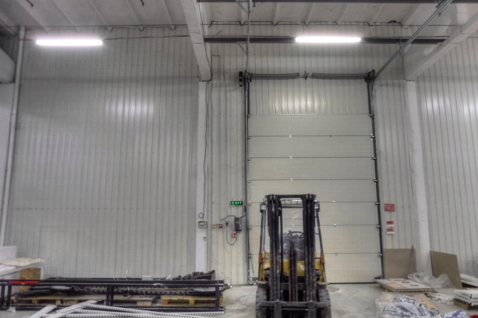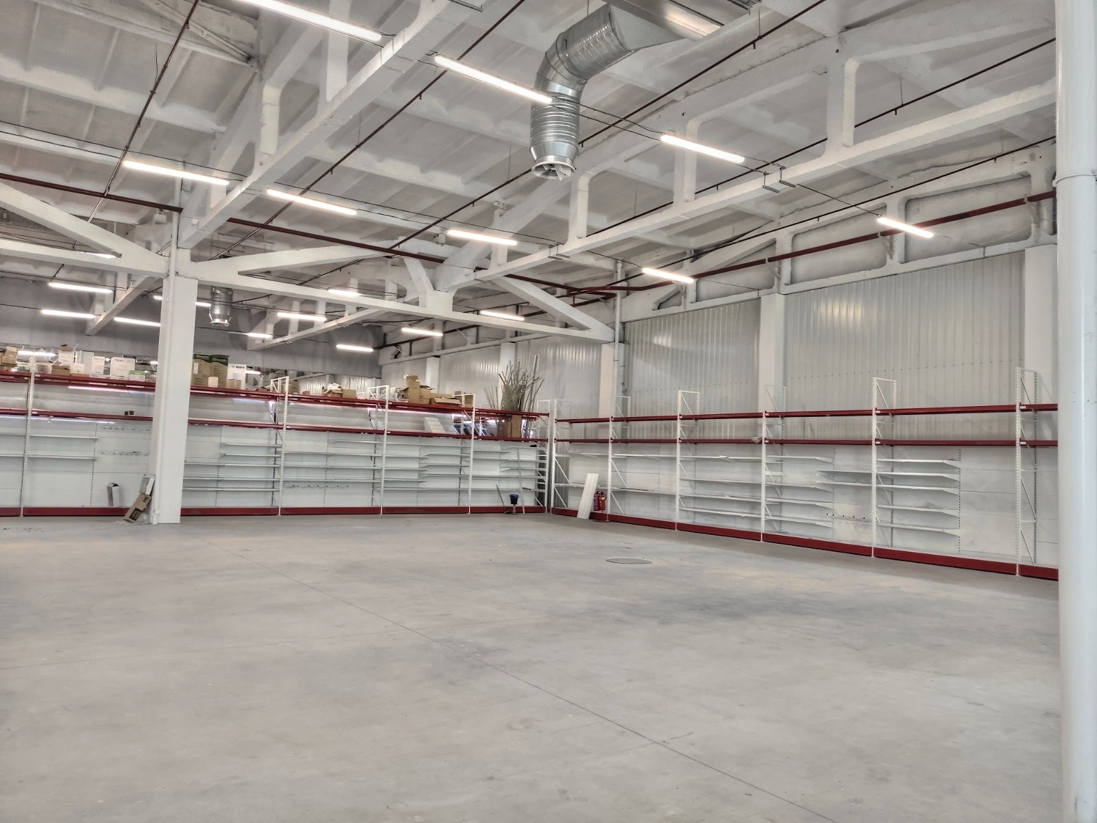 Височина до носещи греди - 5,57м, височина до покрив-7м
