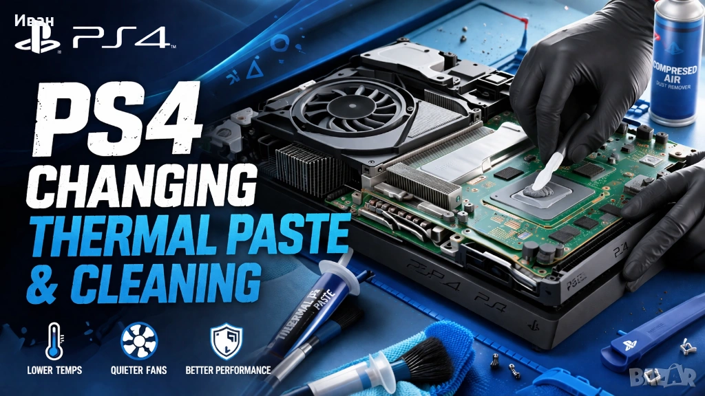 Ако твоят PS4 започва да шуми като „самолет“ ✈️ или загрява прекалено много – време е за професионално обслужване!
