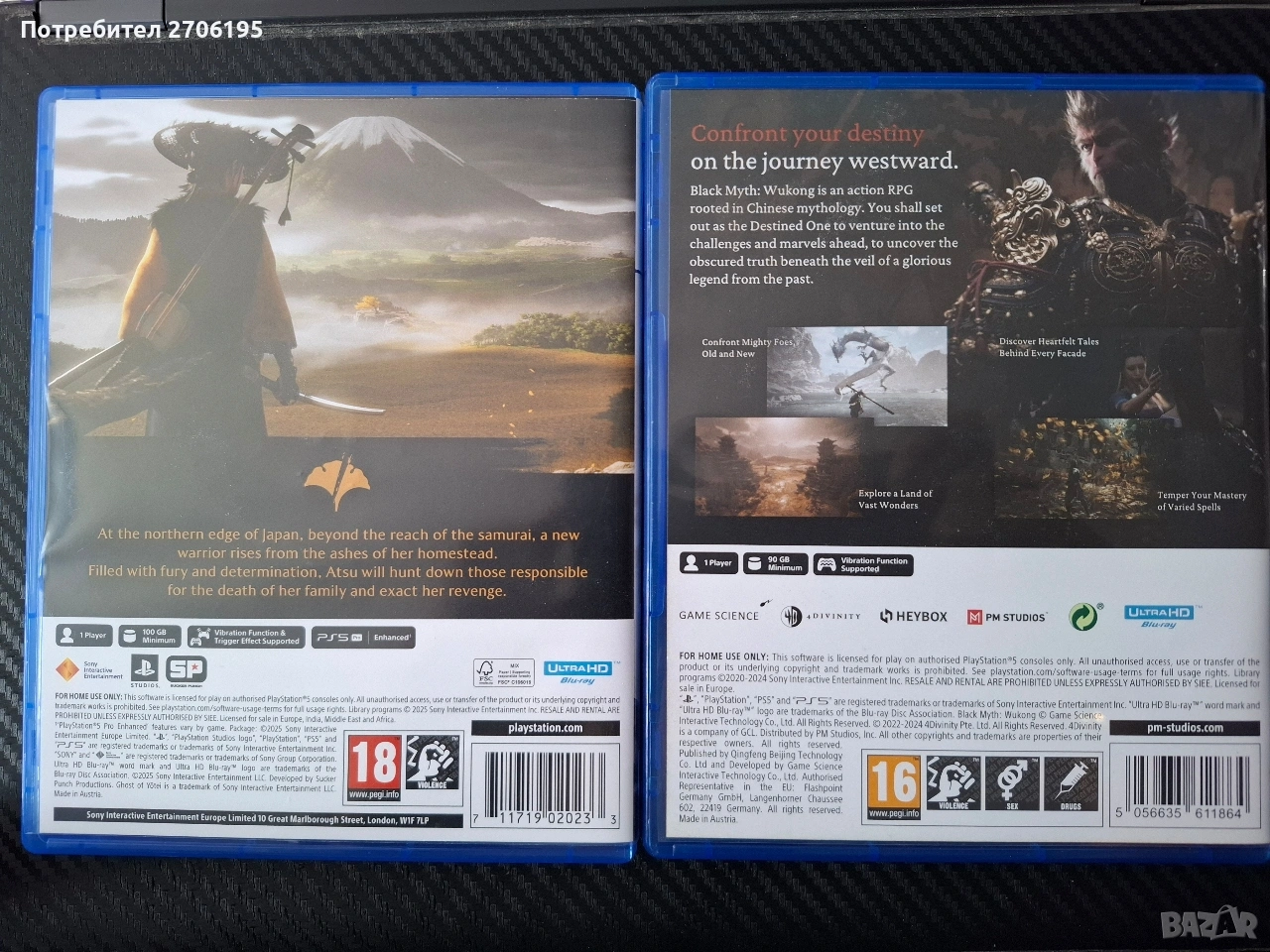 Продавам игри Ghost of Yotei и Black Myth Wukong за PlayStation 5