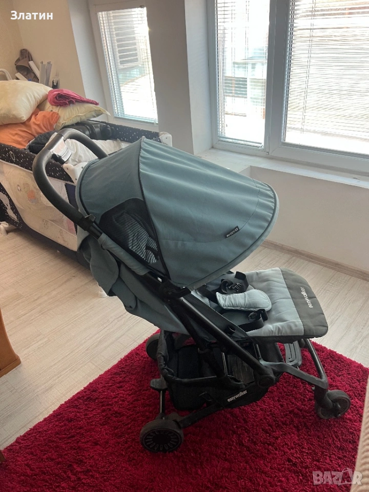 Количката е в добро състояние. Наистина много удобна, лекичка, за секунди се сгъва. С нормални следи от употреба. Намира се в Поморие за лично предаване. С подарък зимен чувал, който е купен допълнително. Изпращаме и с Еконт.