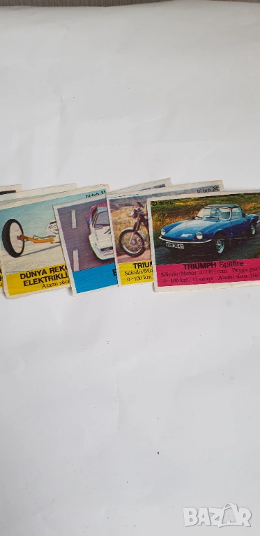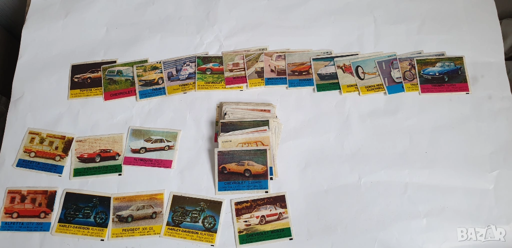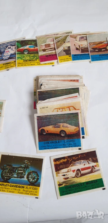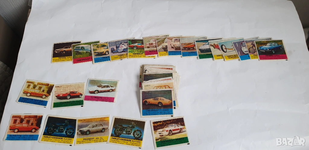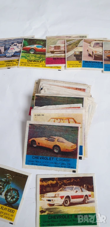 Картинките са общо 106 броя от които 97 броя неповтарящи се и 9 броя повтарящи се.Номерата са :2,4,5,6,7,8,9,10,11,14,20,21,23,24,27,28,29,30,32,33,34,37,39,40,41,42,43,44,46,49,51,53,54,56,57,58,60,61,62,63,64,65,66,69,70,71,72,73,74,75,76,77,78,81,83,88,91,92,93,94,99,100,101,102,103,104,106,108,112,114,115,116,118,119,120,125,126,128,129,130,131,135,136,140,144,147,148,150,152,154,155,158,161,162,164,165,166.Повтарящите се 9 броя са номера:145,125,125,165,167,167,112,120,155.Цената е за всичките 106 броя.