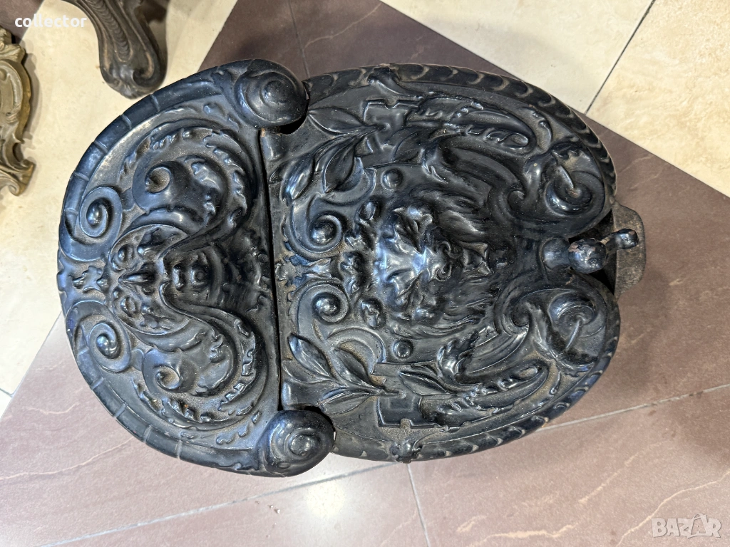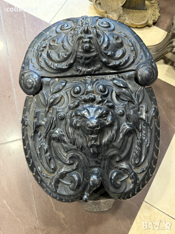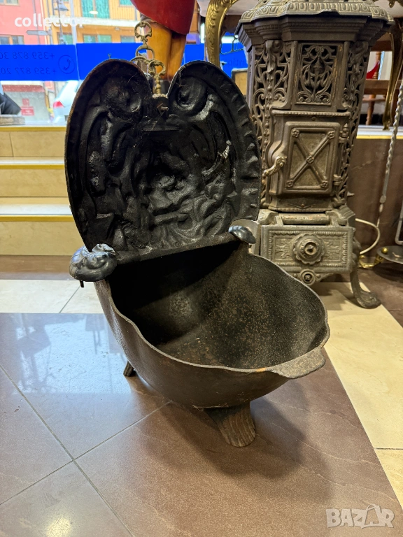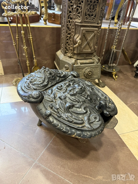 Бароков мангал за въглища, изработен от чугун. Тези съдове са били използвани през XIX и началото на XX век за съхранение и пренасяне на въглища или антрацит до камини и печки