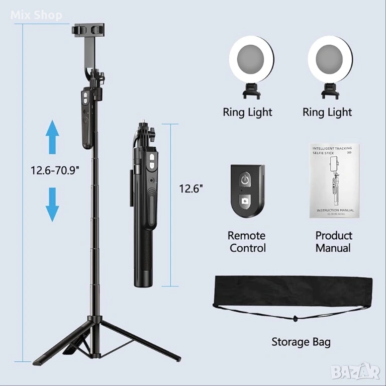 【Статив за проследяване на движение със светлина】Този статив за проследяване на движение се предлага с две подвижни мини пръстеновидни светлини, които можете да изберете да инсталирате, за да подобрите качеството на вашите видеоклипове, когато няма достатъчно светлина за записа им. Малките пръстеновидни светлини имат 3 цветови режима (топъл, студен и естествен) и всеки режим има 3 нива на яркост.