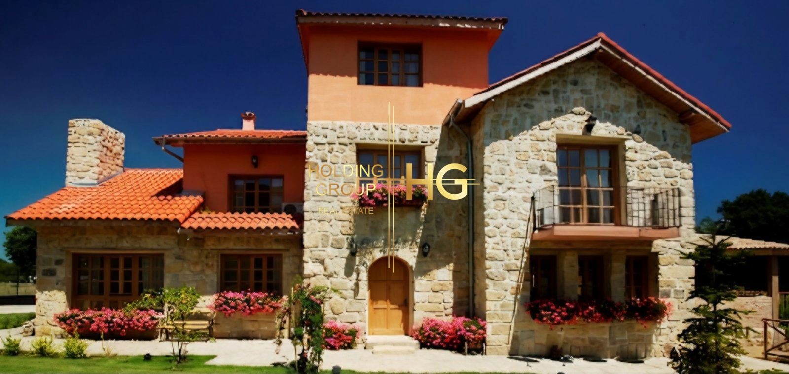 HOLDING GROUP real estate представя на Вашето внимание уникален имот в село Приселци. В парцел с площ от 5 074 кв.м. са изградени две къщи. Основната къща е с разгъната застроена площ от 1 248 кв.м. Ситуирана е на два етажа и разпределението е следното: