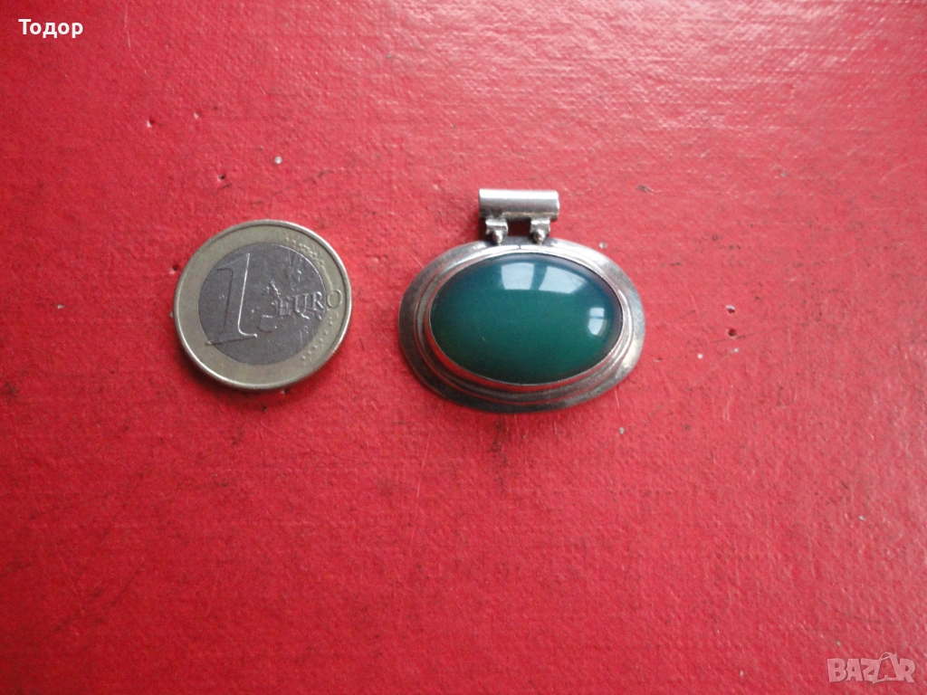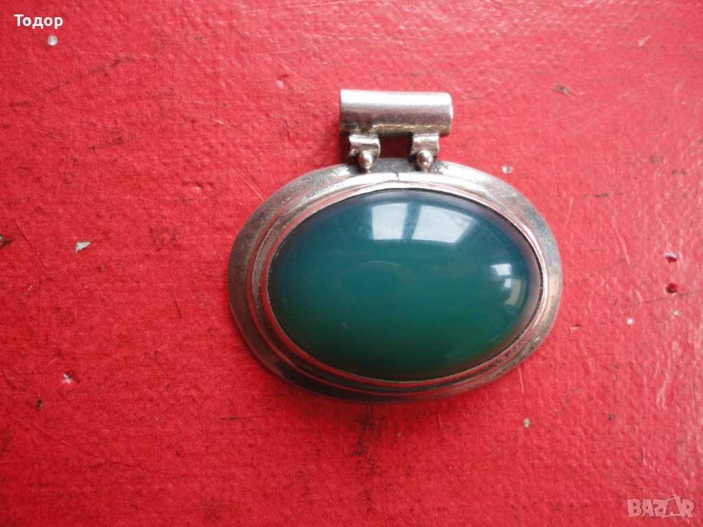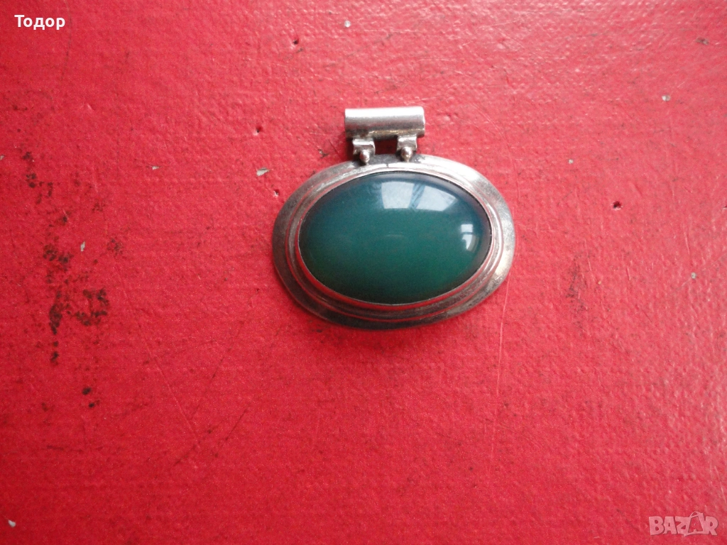 Сребърно колие медальон с нефрит 925 → Обява 54080848