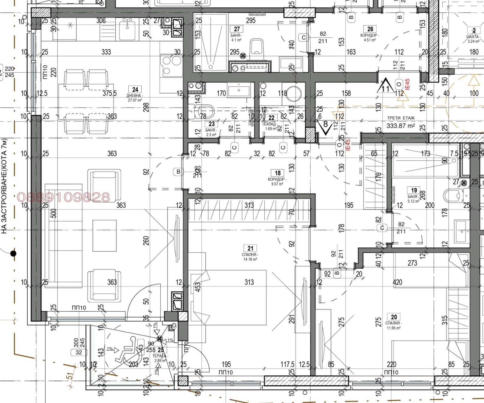 На трети етаж - югозападен, 104,05 кв. м.; 223 700 евро.