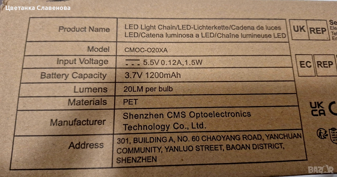 Батерия: 3.7 V – 1200 mAh