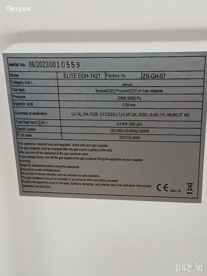 Газова отоплителна печка ELITE EGH-1421 → Обява 54080966