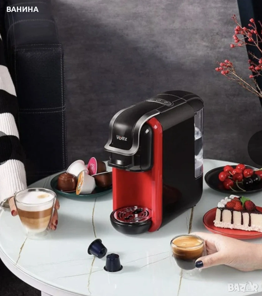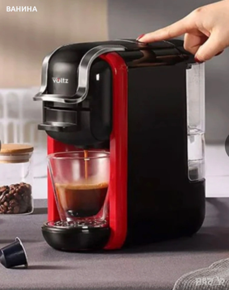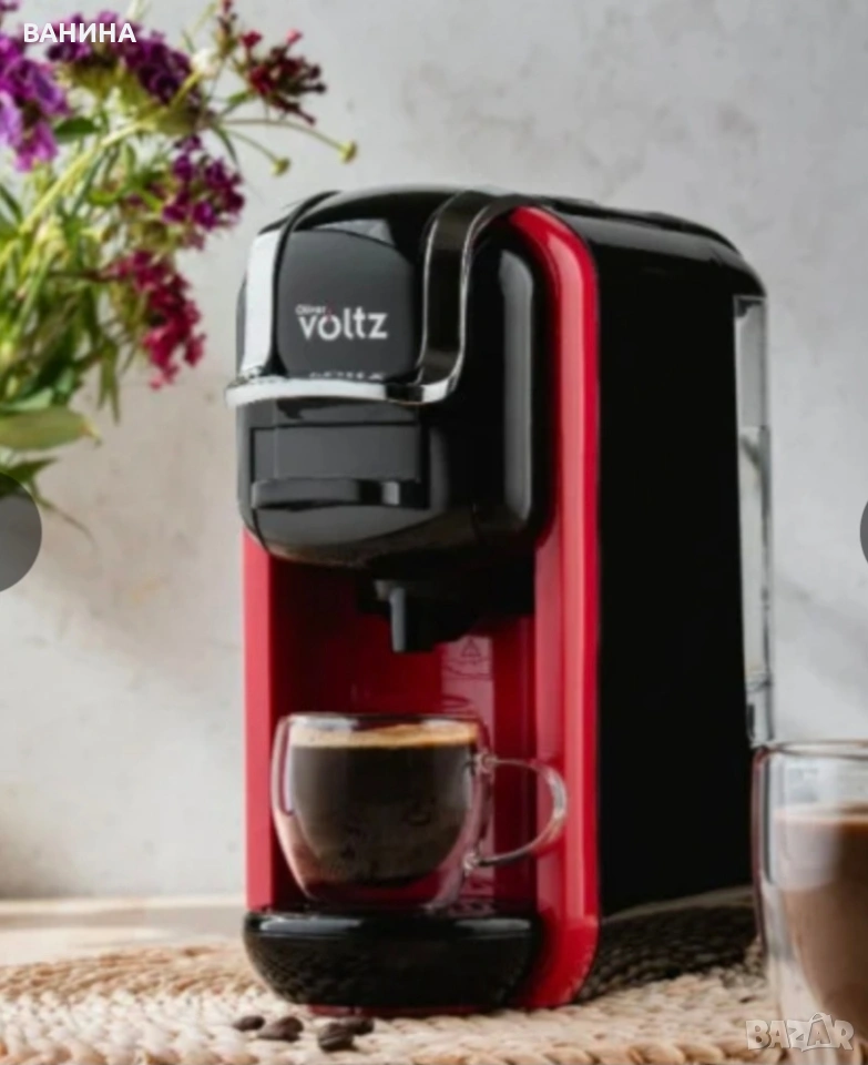 Мултифункционалната еспресо машина Oliver Voltz OV51171B е изключително практична и полезна за всяко едно домакинство. С нея ще откриеш много възможности за приготвяне на любимото ти еспресо. Благодарение на различните адаптери ще можеш да се насладиш, както на класическо еспресо от мляно кафе, така и от различни видове капсули. Освен това, еспресо машината Voltz разполага с 19 бара налягане за перфектен, плътен каймак и безкомпромисен вкус.Защо да избереш Oliver Voltz OV51171B?8 В 1Машината е снабдена с пет различни адаптера, предоставяйки ти избор между – капсули Dolce Gusto (+ Cappuccino), Nespresso (съвместими и с LOR & Jacobs малки капсули), Lavazza Blue (съвместими и с Tchibo Cafissimo), както и ESE 44mm и разбира се мляно кафе. Така изборът на кафе може да е различен всеки ден. Защо да избереш Oliver Voltz OV51171B?8 В 1Машината е снабдена с пет различни адаптера, предоставяйки ти избор между – капсули Dolce Gusto (+ Cappuccino), Nespresso (съвместими и с LOR & Jacobs малки капсули), Lavazza Blue (съвместими и с Tchibo Cafissimo), както и ESE 44mm и разбира се мляно кафе. Така изборът на кафе може да е различен всеки ден.19 бара наляганеИзключително мощната помпа превръща кафето в чаша блаженство. Тя гарантира гъст и наситен каймак, присъщ за едно истинско еспресо изпълнено с аромат и плътен вкус. 19 бара наляганеИзключително мощната помпа превръща кафето в чаша блаженство. Тя гарантира гъст и наситен каймак, присъщ за едно истинско еспресо изпълнено с аромат и плътен вкус.Кафе – без сложни настройкиПросто избери своята капсула, натисни бутона и ще се наслаждаваш на перфектното кафе за броени секунди.Резервоар за вода 0.600 LРазделящ се резервоар за водаРазделящ се отцедникПрави почистването и поддръжката бързи и лесни.Светлинни индикаториЕспресо машината Voltz те уведомява мигновено, когато твоето кафе е готово.