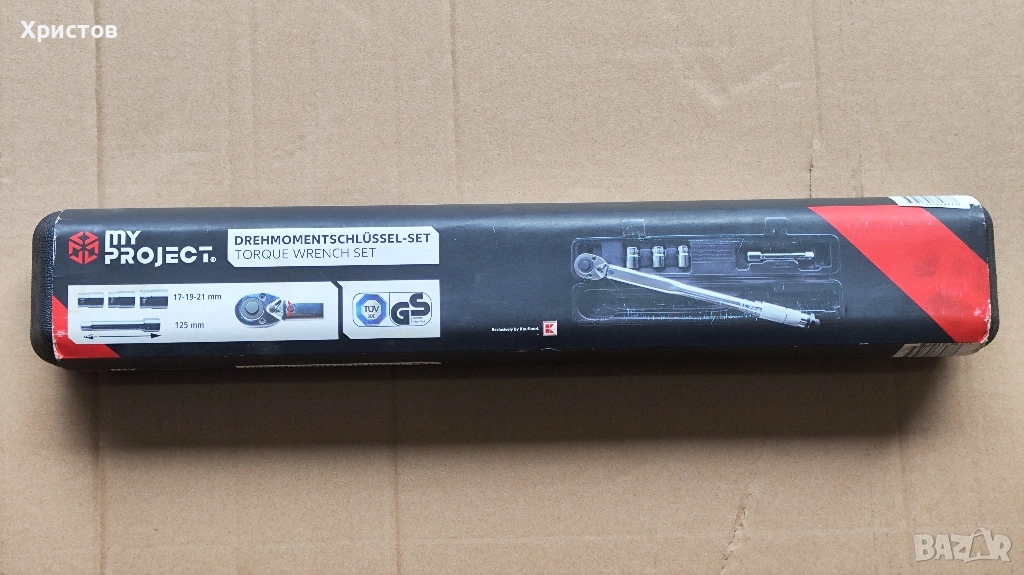 Динамометричен ключ MY PROJECT 40-210nm с удължител 125мм и вложки 17, 91 и 21мм.
