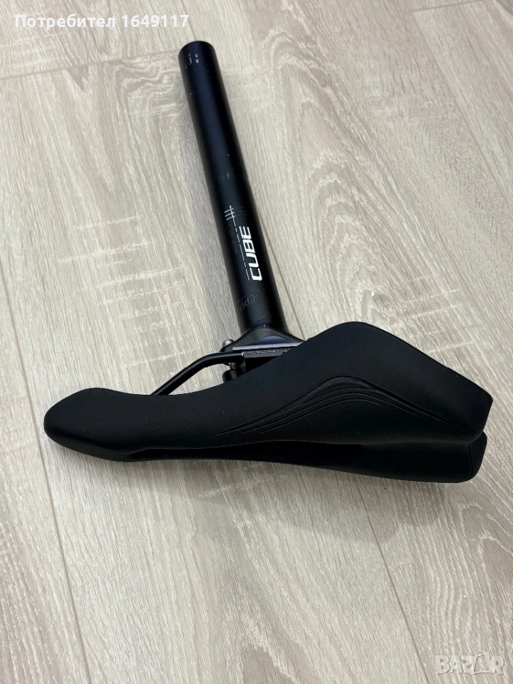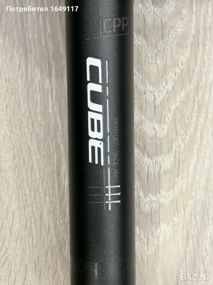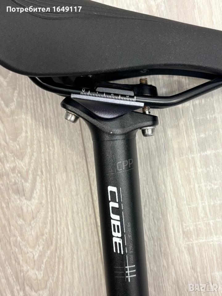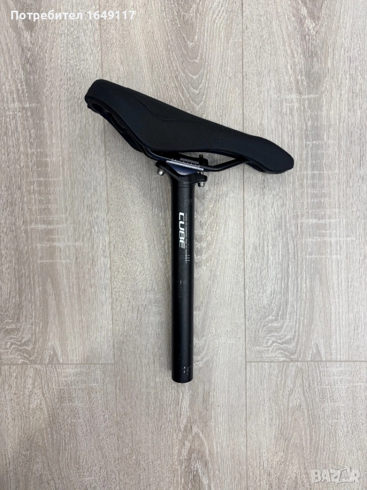 Продавам алуминиево колче CUBE CPP с размери: Ф30.9mm и обща дължина 300mm. На колчето е монтирана чисто нова спортна седалка.