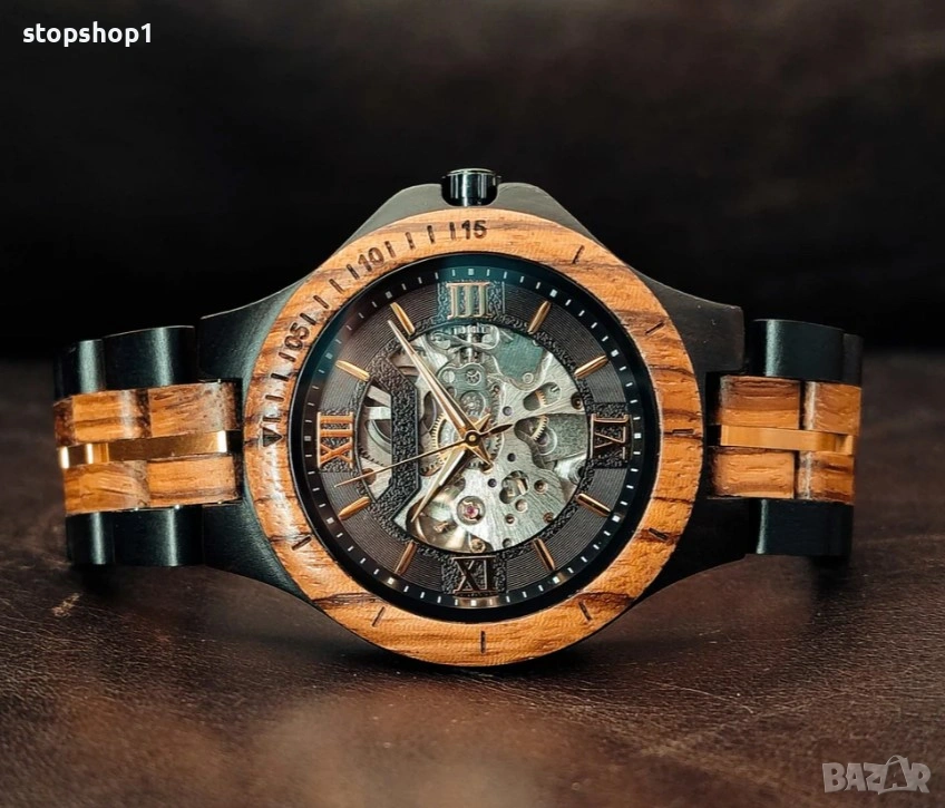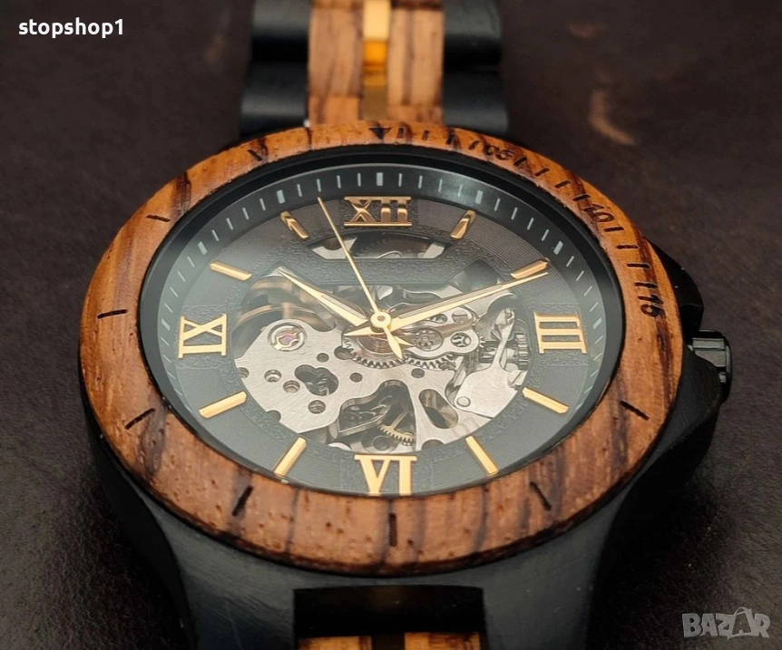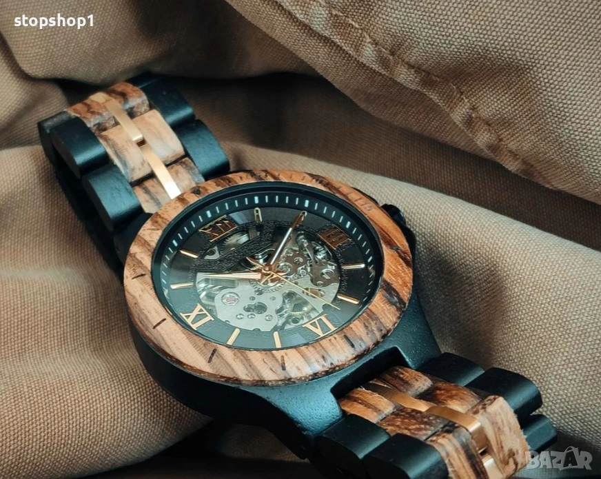 Автоматичен дървен часовник Zebra & Ebony има модерен, автентичен и индустриален дизайн, съчетан със страхотен механичен/кинетичен механизъм, и със сигурност ще привлече вниманието, където и да се забавлявате с този устойчив дървен часовник.