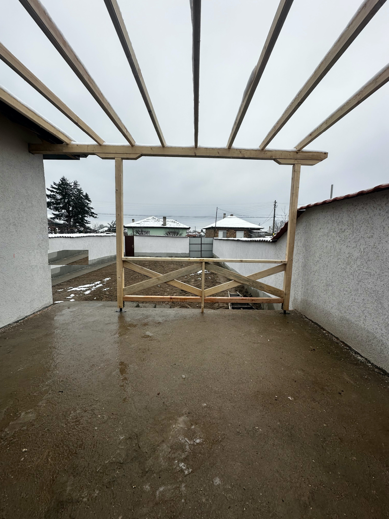 Имотът е с РЗП 75 кв.м, допълнително 25 кв.м веранда, разположен в самостоятелен двор от 300 кв.м.