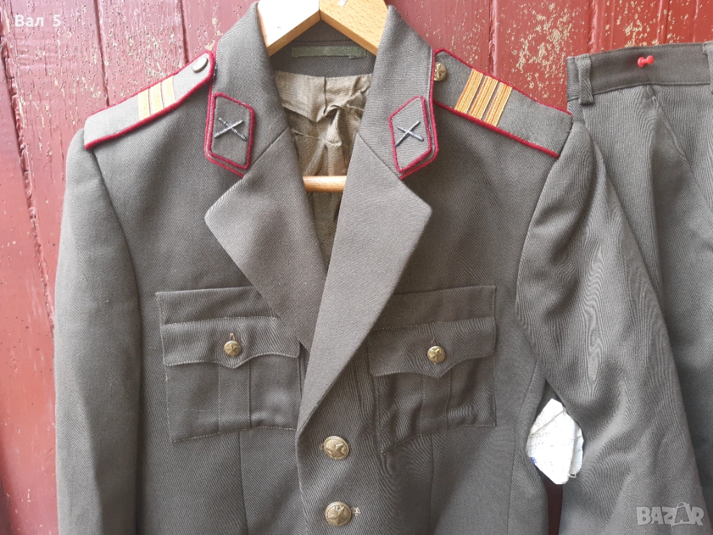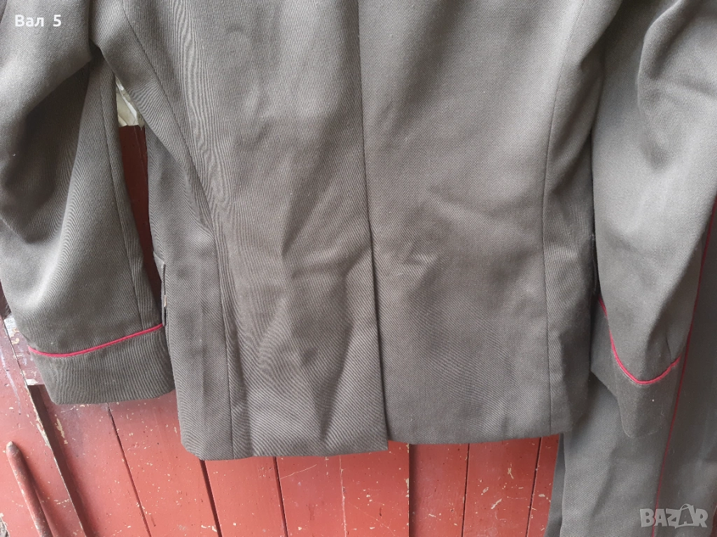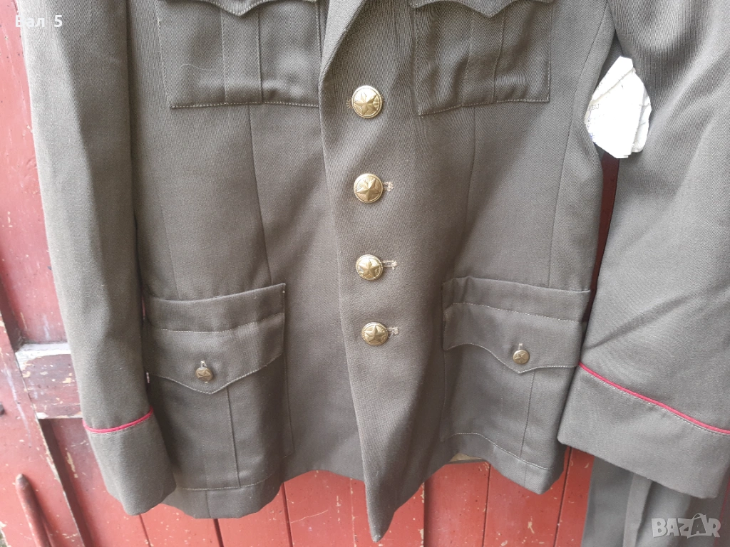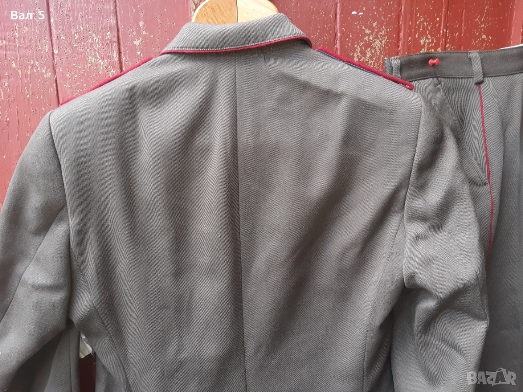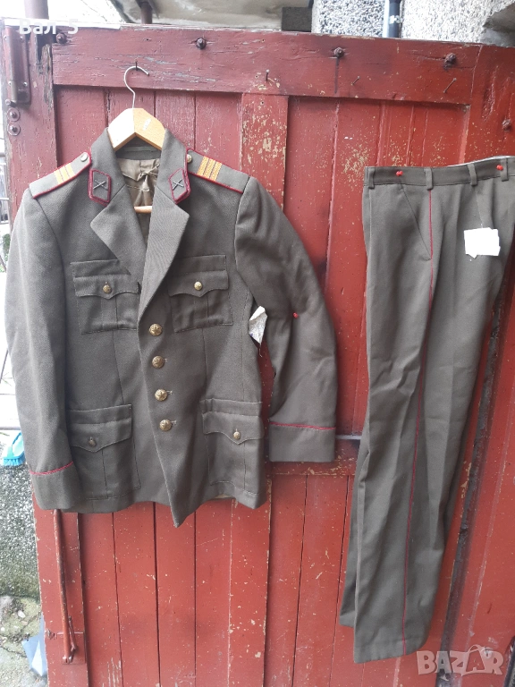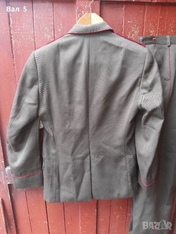 НЕУПОТРЕБЯВАНА , с пришити хартиени етикети . Размери : сако - ширина в раменете - 43 см , при подмишниците - 50 см , дължина на ръкава от подмишницата - 48 см , дължина от яката - 77 см . Панталон - обиколка в кръста - 70 см , дължина - 105 см , дължина на крачола - 80 см . 4 а мз ч б 2