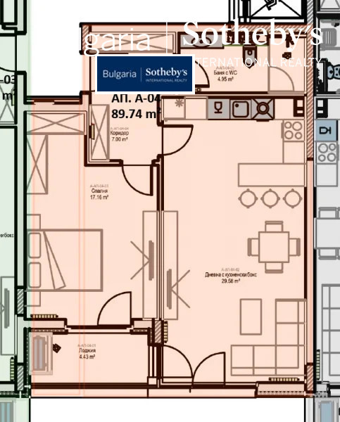 Разпределение: хол с трапезария и кухненски бокс, спалня, баня с тоалетна, лоджия.