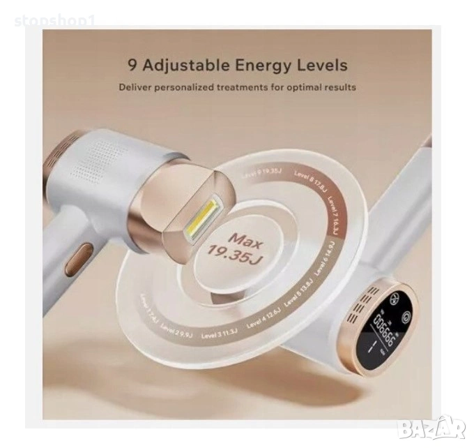 - Максимум 19,35 J и по-висока скорост: Прозорецът за импулси на този IPL епилатор е разширен до 3 cm², което може да ускори рутината за обезкосмяване с 30%. С максимална енергия от 19,35 J, уредът може да унищожи космените фоликули от корена, оставяйки кожата гладка и без мъх. Намаляване на окосмяването може да се наблюдава само след 8-12 седмици.