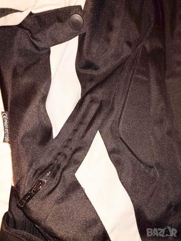 Моторджийско яке, размер L. Кордура. С протектори на раменете, лактите и гърба. Има и сваляща се подплата с цип. Добро състояние.
