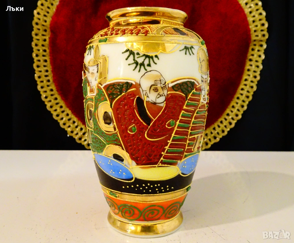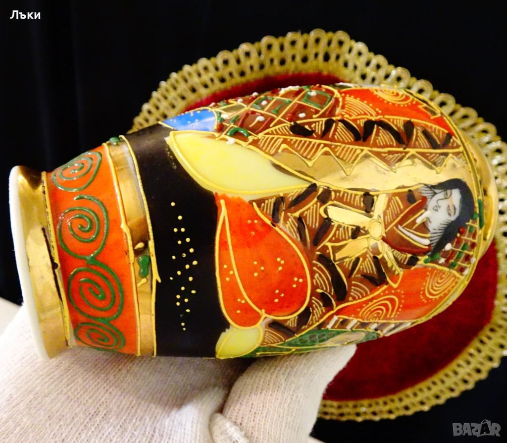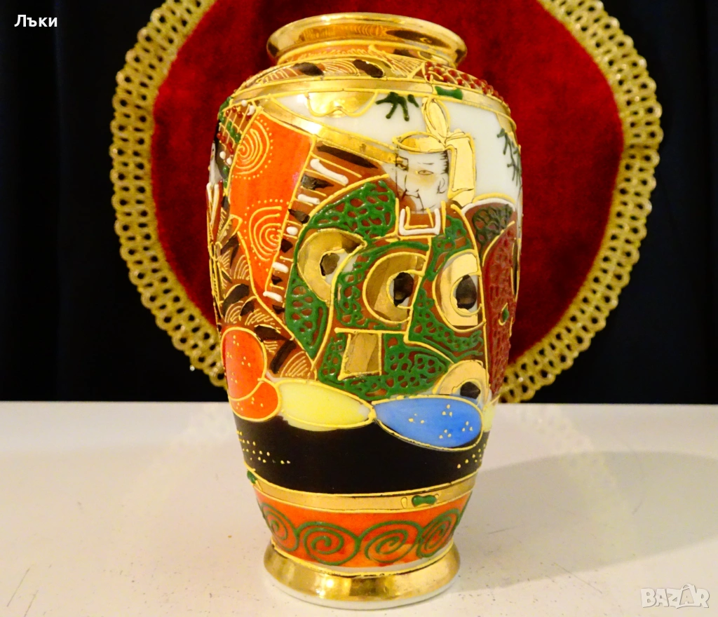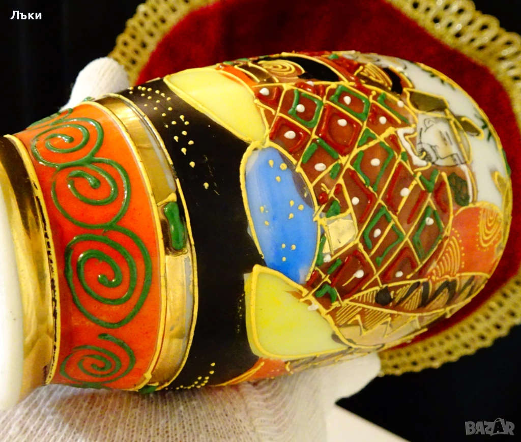 рисувана в стил Сатцума с блестящо злато 24 карата и изпъкнали цветни емайли Moriage.Маркирана с драконов