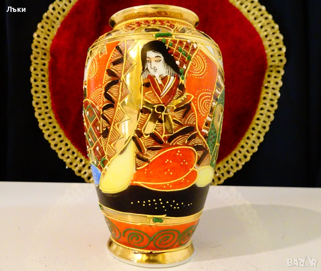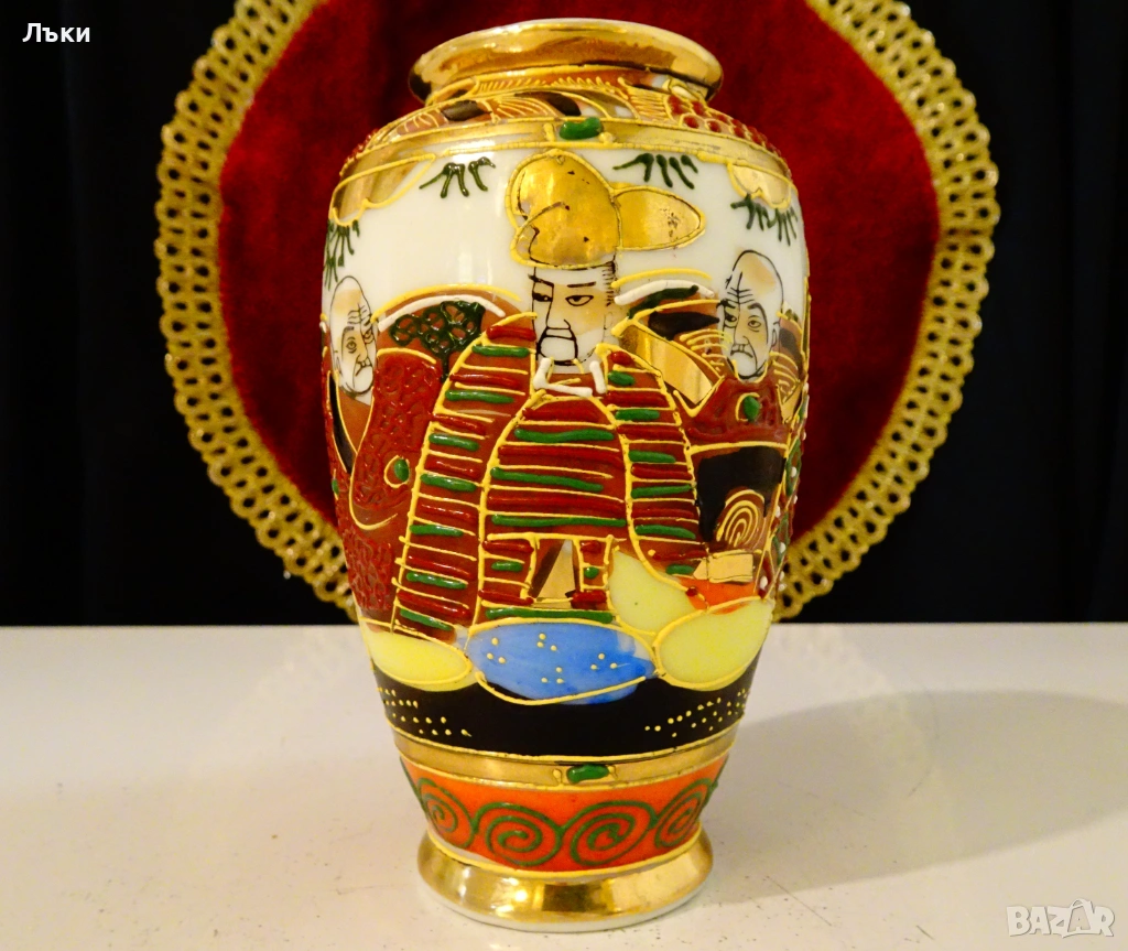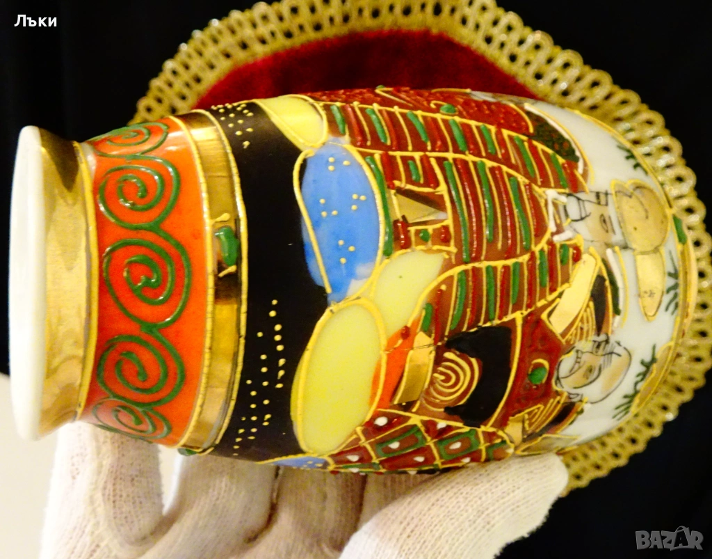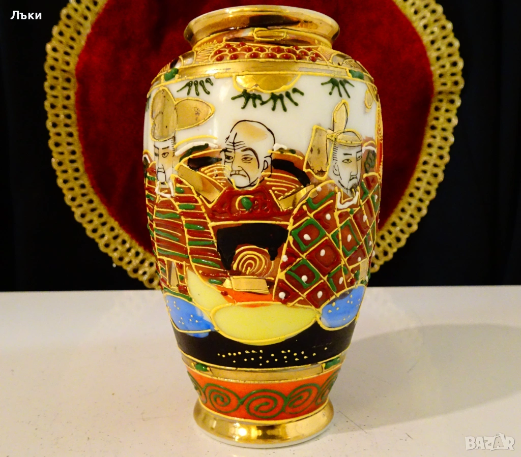 рисувана в стил Сатцума с блестящо злато 24 карата и изпъкнали цветни емайли Moriage.Маркирана с драконов