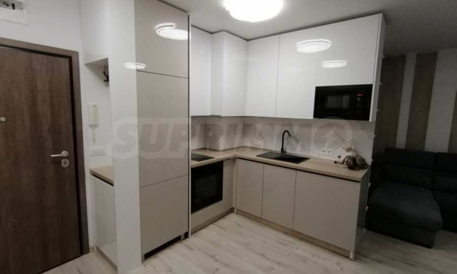 Апартаментът се дава под наем с обзавеждането, видно на снимковия материал. Кухнята е напълно оборудвана с уреди от реномирани марки, а цялото обзавеждане е избрано с много вкус, като не са пестени средства за комфорта на бъдещите собственици.