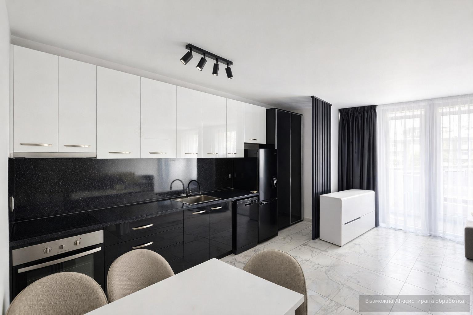 Жилището се предлага луксозно обзаведено и оборудвано с всичко необходимо за едно домакинство.