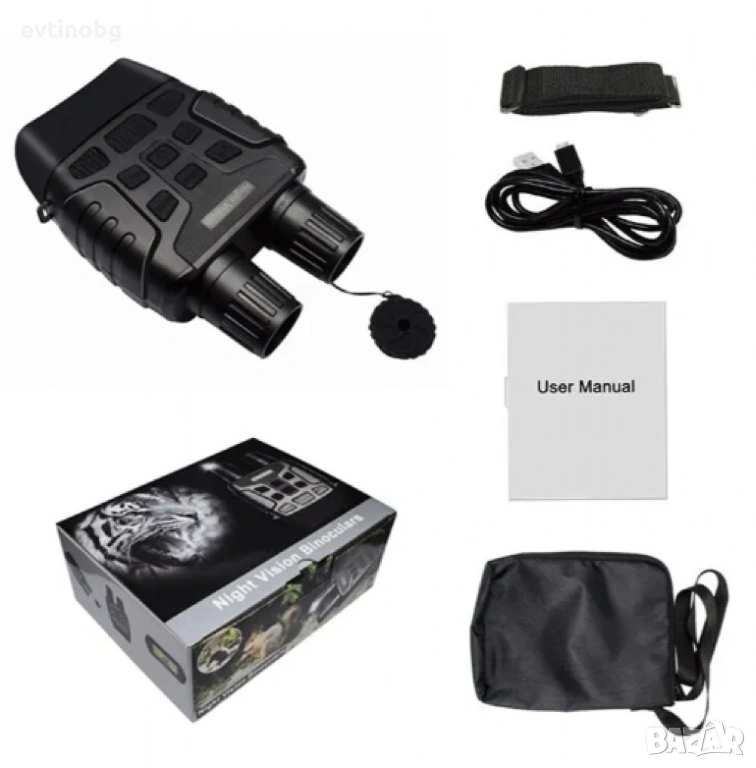 Този бинокъл предлага отлично нощно виждане с оптично увеличение 3X и резолюция 1280x720P (720P), което осигурява ясни и детайлни изображения. Със степен на водоустойчивост IP56, бинокълът е защитен от прах и водни пръски, което го прави подходящ за употреба на открито при различни условия. Захранването става с 6 батерии AA (не са включени), което осигурява лесна поддръжка и дълготрайна употреба.
