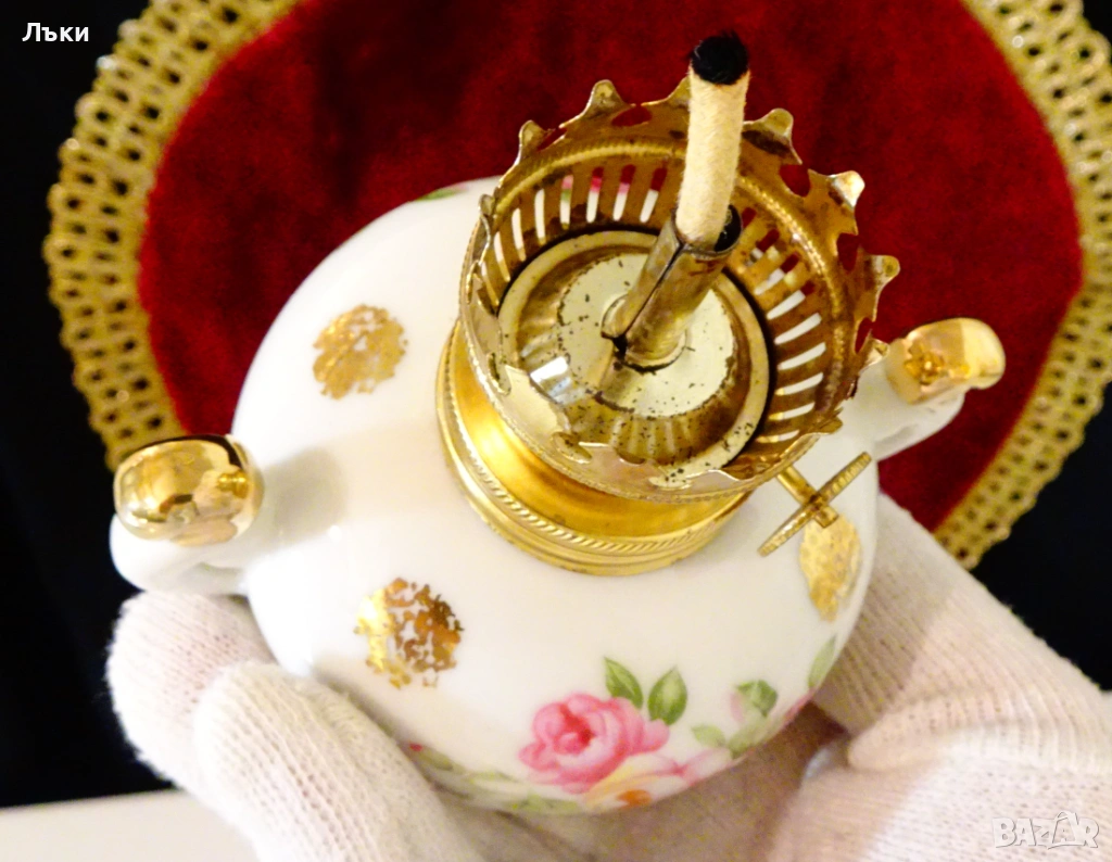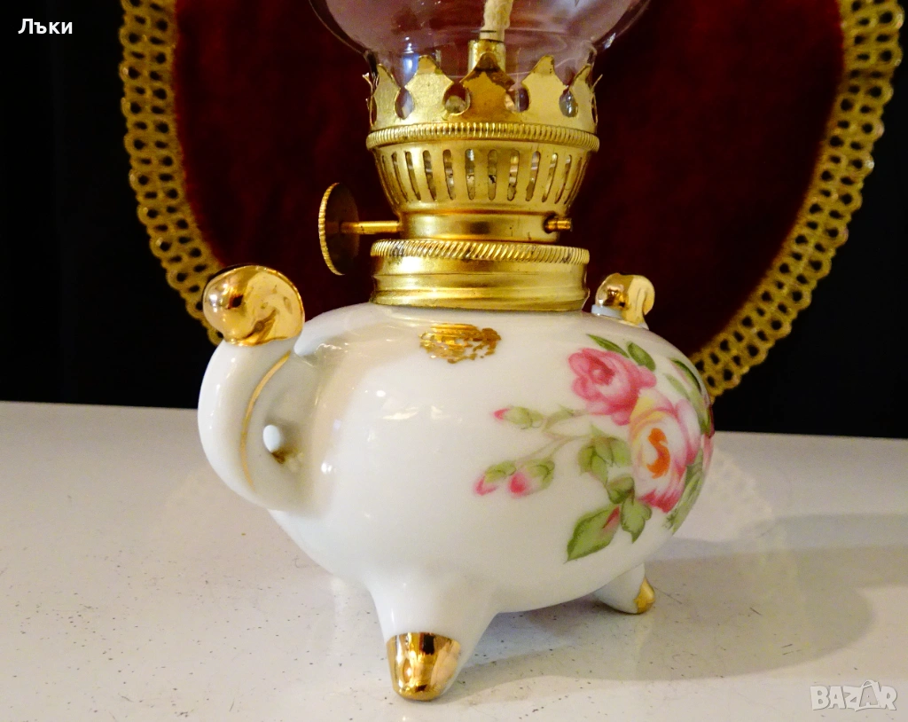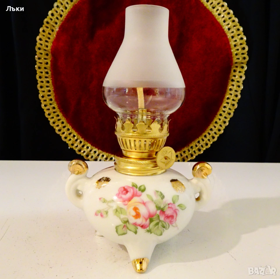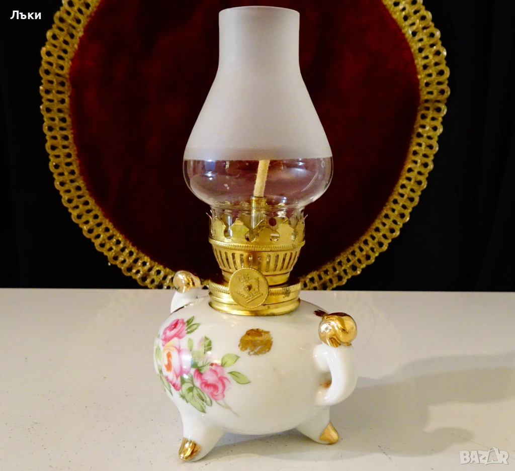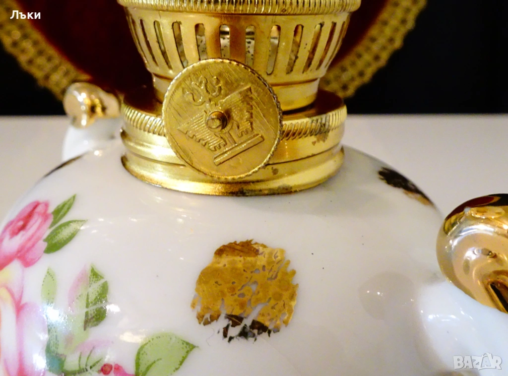 Стара порцеланова газена лампа,ръчно рисувана с рози и 24