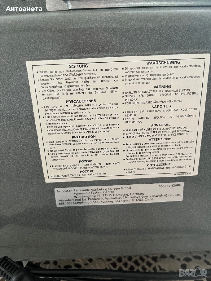 микровълнова фурна Panasonic NN-ST462M. → Обява 54082577