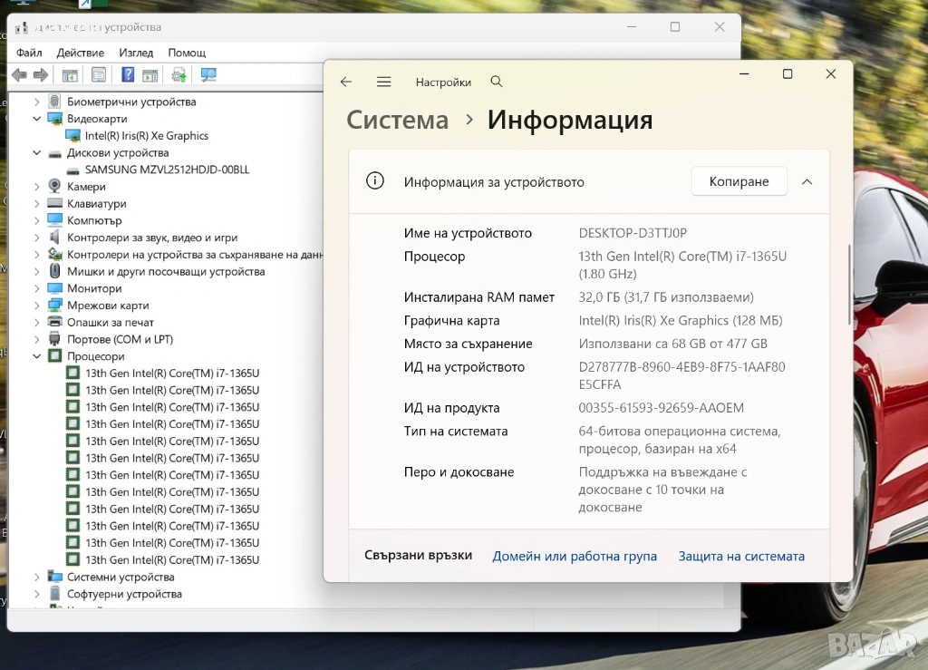 ОС: Windows 11 Pro – закупен заедно с лаптопа, инсталиран и готов за работа