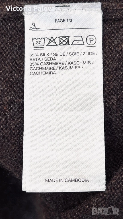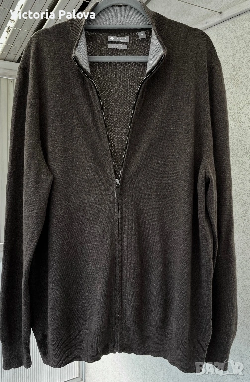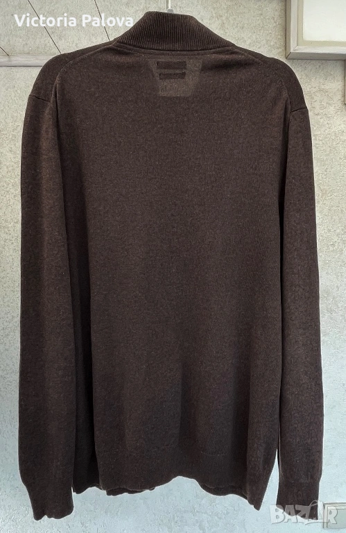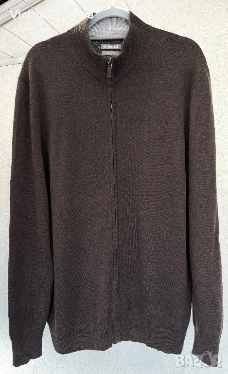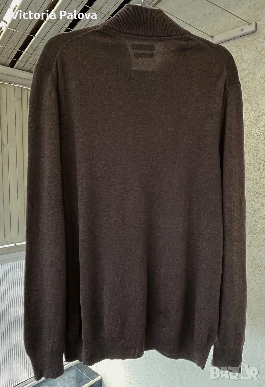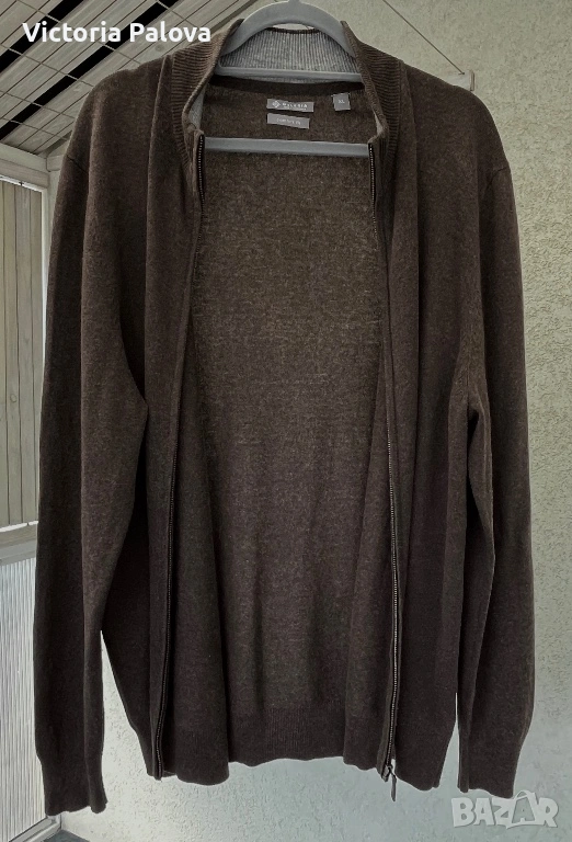 Жилетка от Galeria, която не разчита на ефект, а на усещане. Материята е рядък баланс между коприна и кашмир – тънка, гладка и почти течна на допир, с естествена мекота, която не тежи и не стои обемно. Пада спокойно по тялото, следва линията без да я стяга и създава силует, който изглежда премерен и завършен. Цветът е кафяв, наситен и луксозен. Ципът и изчистената яка запазват визията стегната и модерна, без излишни детайли. Разтеглива, нежна и фино плетена, тази жилетка стои еднакво добре както върху риза, така и директно върху кожа, където качеството на материята наистина се усеща. Galeria е немска линия от по-висок клас, позната с това, че работи с качествени материи и изчистен дизайн - дрехи, които не остаряват визуално и запазват стойност. Конкретният модел е с реална цена 119 € . Размерът е XL с комфортна линия – рамо 50–51 см, гръдна обиколка 65 см, дължина 71 см, ръкав 71 см. Сертификатът The Good Cashmere Standard е знак за по-висок клас материал, който не се среща в масови линии.