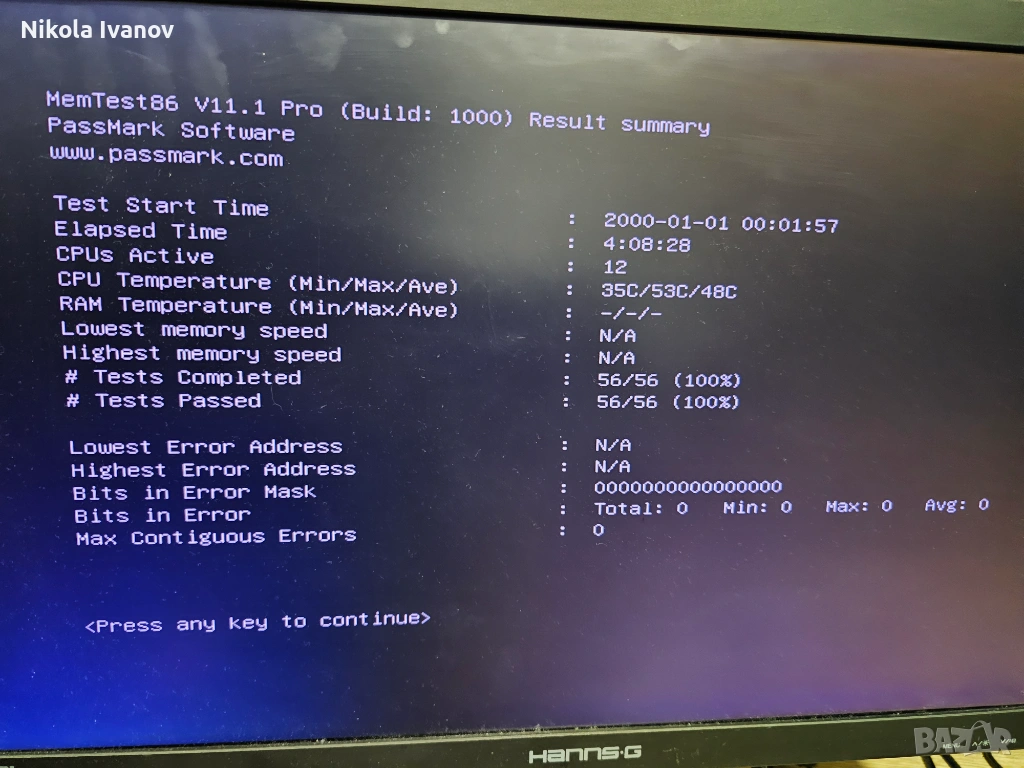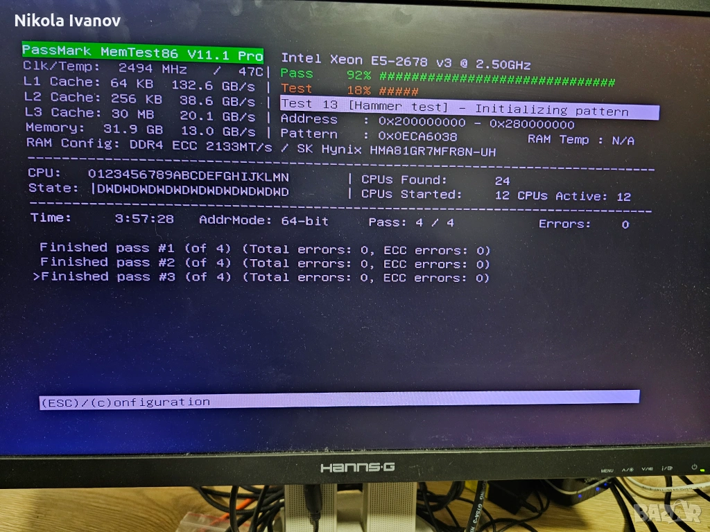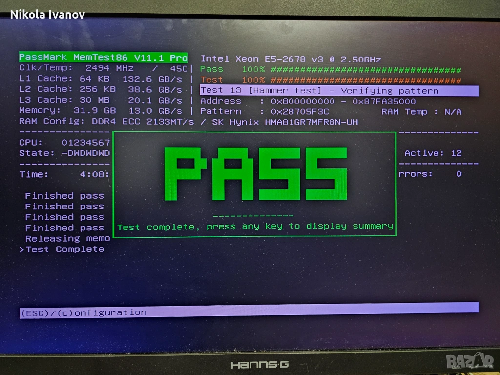 Паметта работи безупречно и е тествана с MemTest86 както се вижда на снимките. Свалена е от работеща машина (с дъно Huananzhi X99-TF).