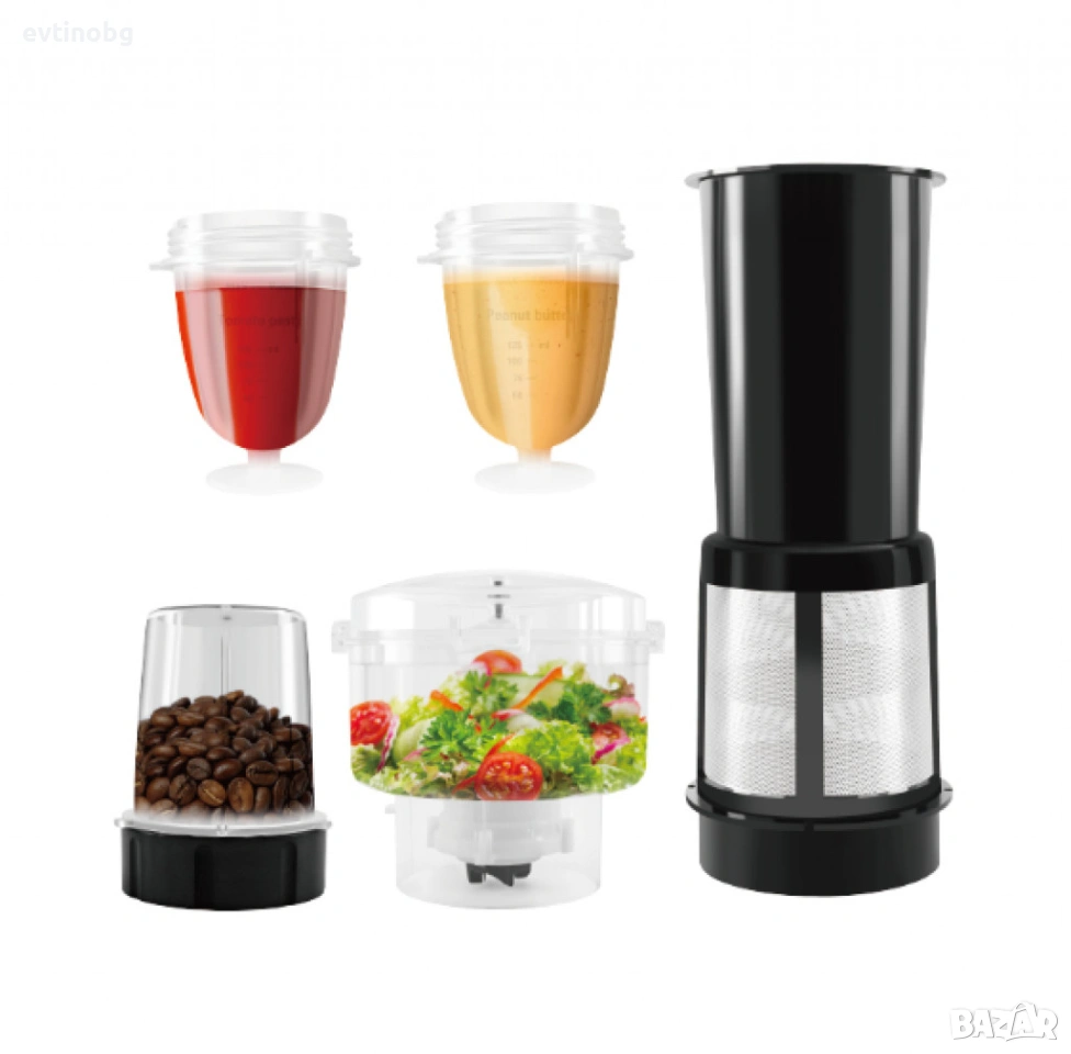 Аксесоари: Мелничка за кафе, два чаши, филтър за сок, купа за нарязване;