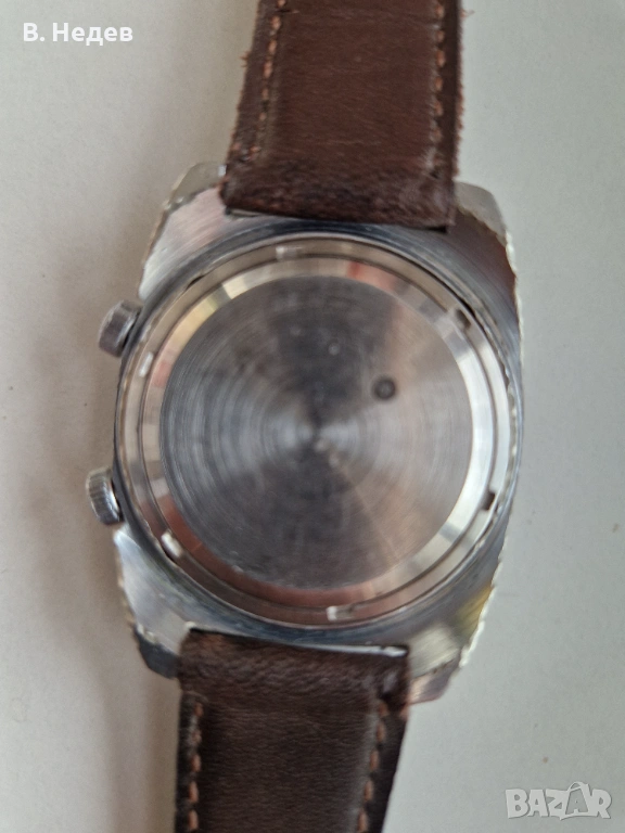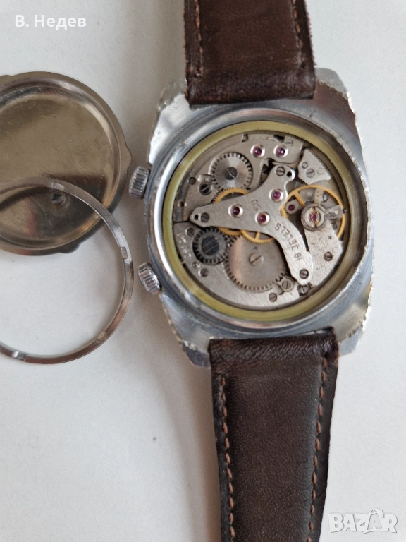 Практически - великолепен часовник; мн. рядък; с ясна четимост; луминесцентни стрелки и индекси! Алармата се задейства коректно и е с продължителност точно 12 сек - както е по спецификацията на завода - производител. Калибърът 2612.1 е копие на швейцарския механизъм Adolf Schild 1475.