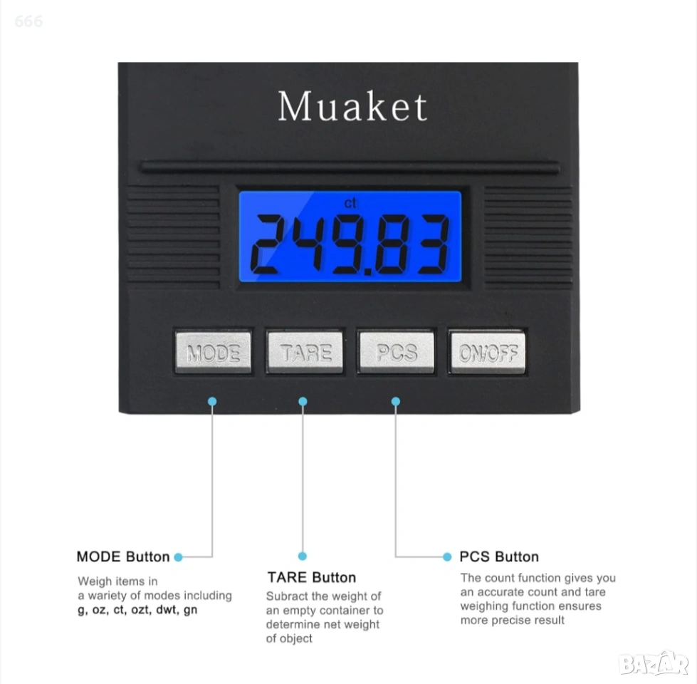 Цифровият милиметър използва високопрецизен сензор с точност от 0,001 g. Дори перата може лесно да бъдат претеглени.