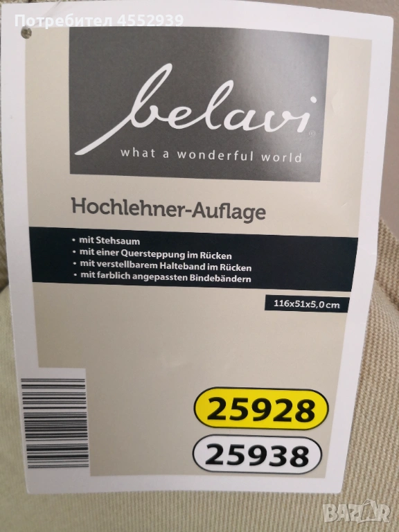 Belavi възглавници за градински столове, нови, с етикет, размер 116/51 /5 см, ленено покритие, бежов цвят, 2 броя, 35 €