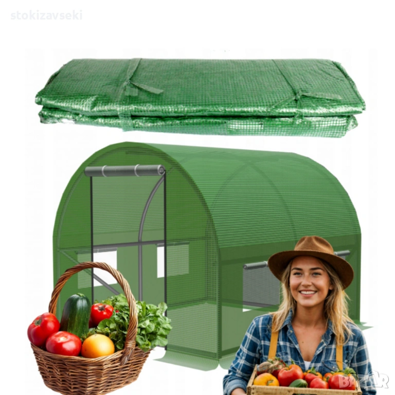 Прозорци: 4 прозореца при тунел 2×2×2 м; 6 прозореца при 3×2×2 м и 3,5×2×2 м — велкро и мрежа против комари