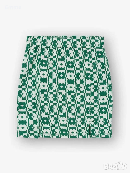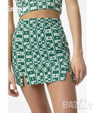 Еластичен модерен комплект в зелен цвят, който се състои от пола и потник С размер